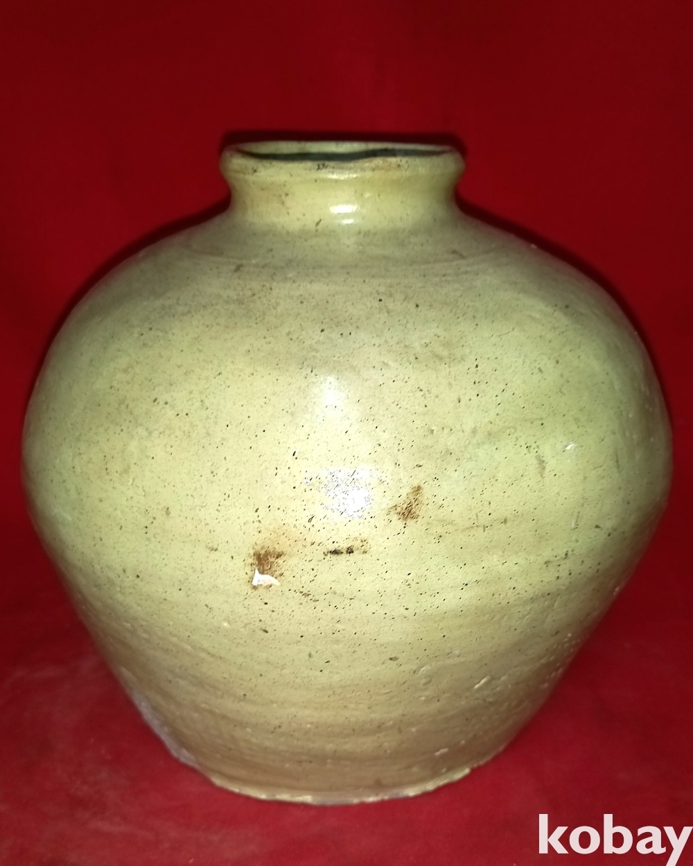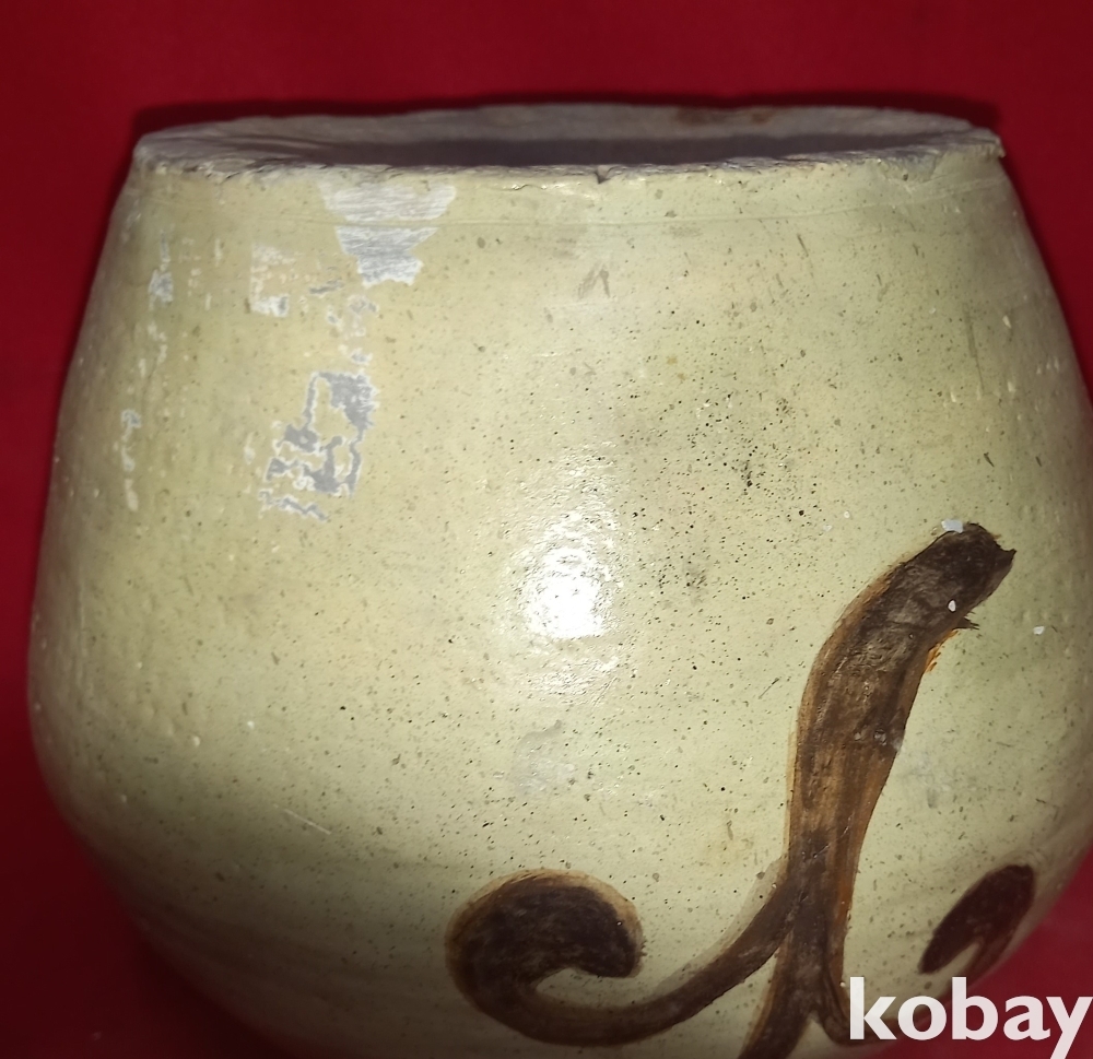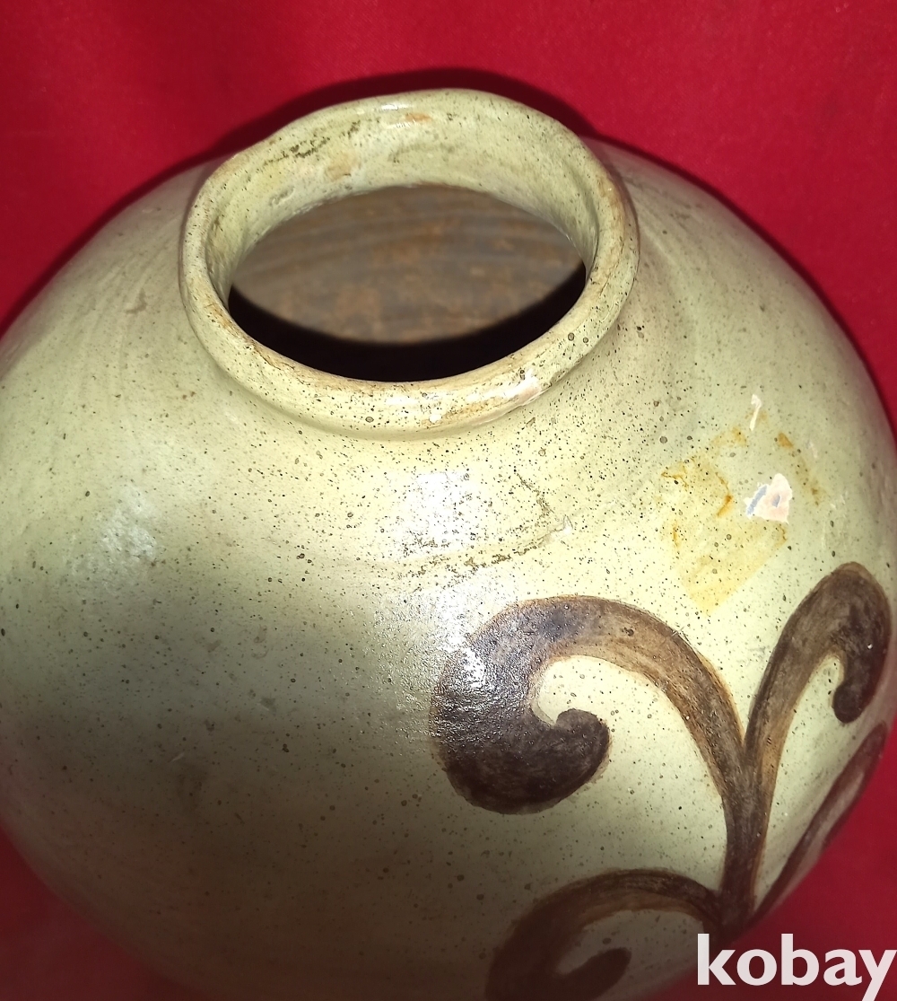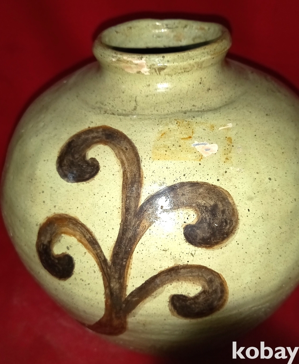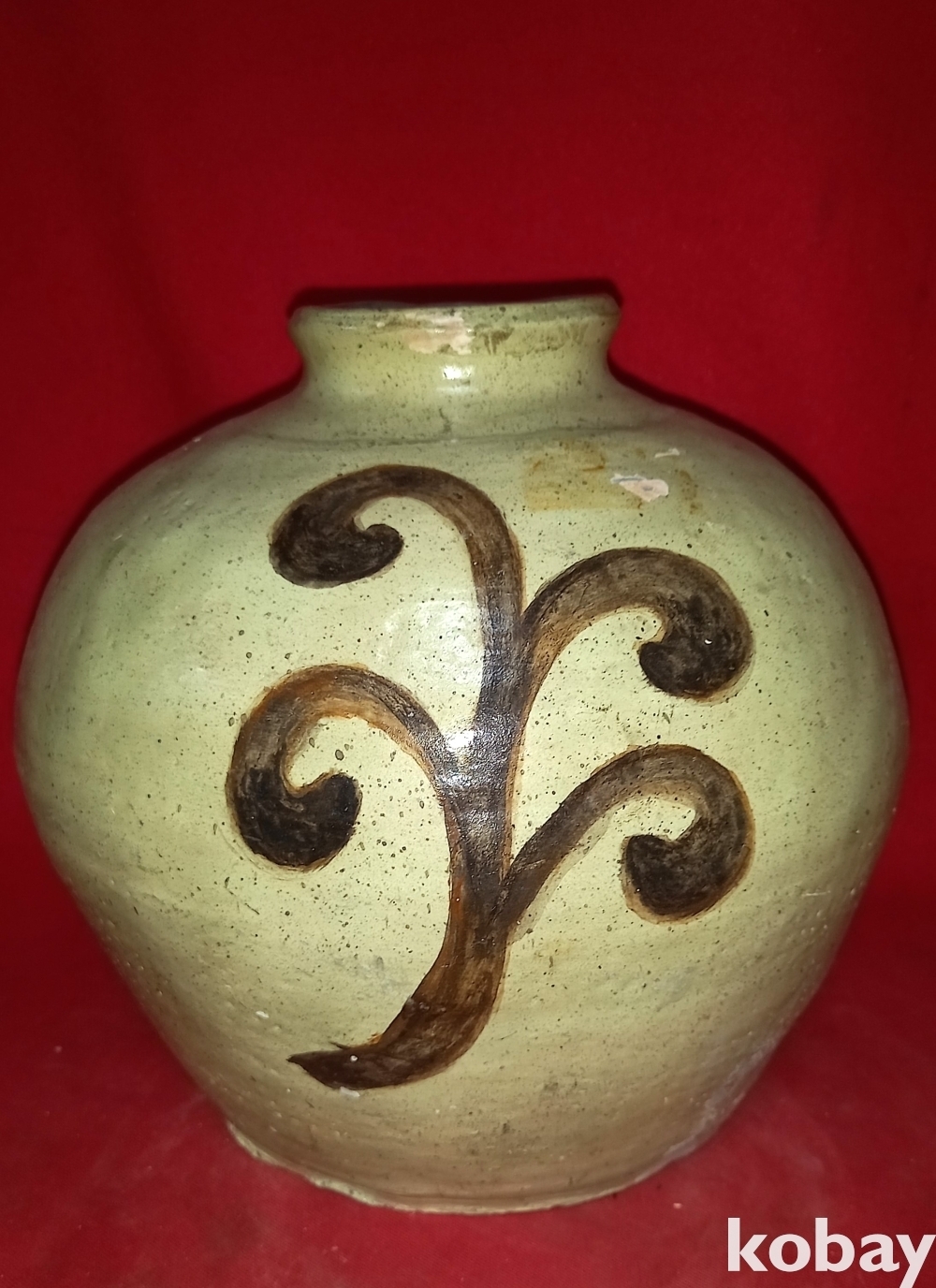 조선시대 철화 나무잎(葉)문양 큰입 도자기입니다,