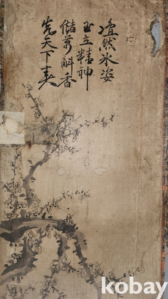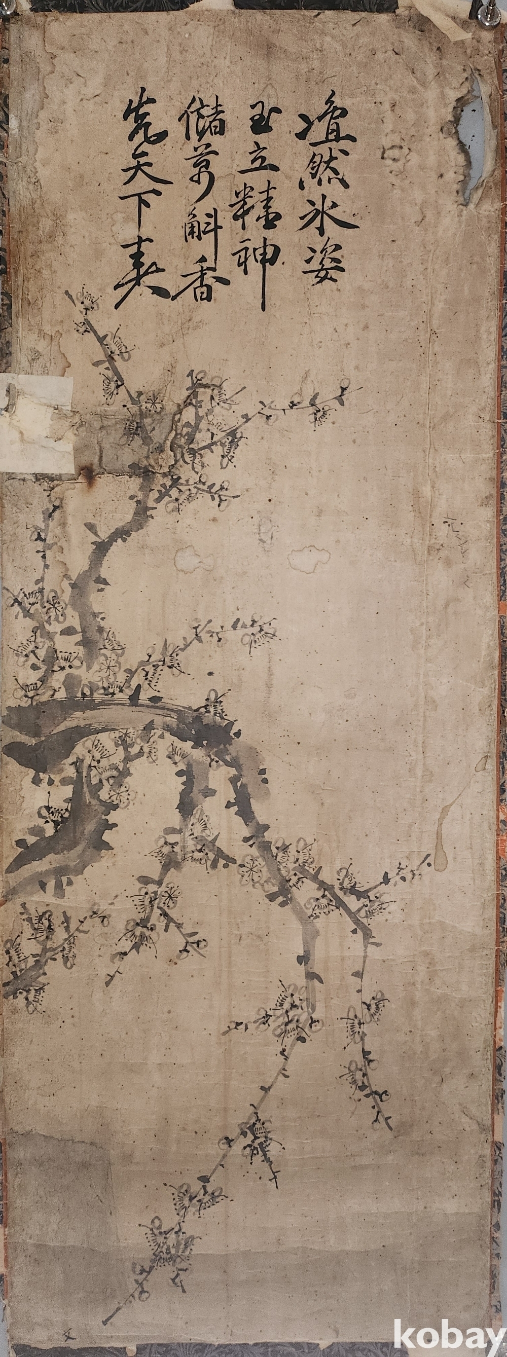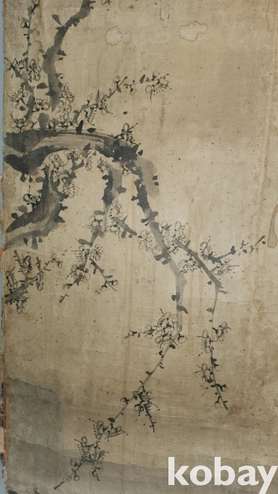 조선시대 장지(將紙)바닥에 수묵화(水墨畵)로 매화(梅花) 그림입니다,