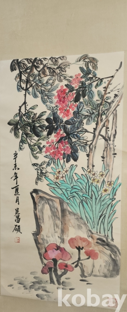 괴석과 어우러진 꽃 그림이 덧보이는 작품으로 매우 좋습니다,