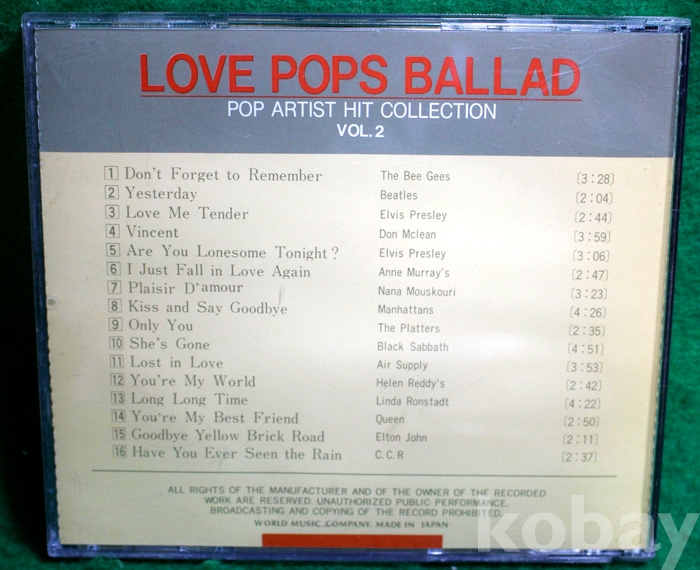 (일본제작 CD) Love pops ballad Vol.2 - Don't forget to remember / Vicent / Kiss and say goodbye...