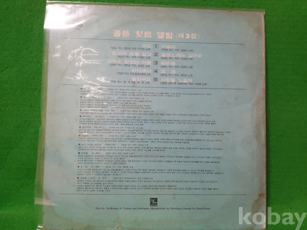 | 자켓상태 | VG : 주름, 접힘, 모서리 찢김 다수 | 음반상태 | G : 눈에 띄는 스크래치, 튐 또는 노이즈 발생 | 발매정보 | 알수없음 | 가사지여부 | 무 |