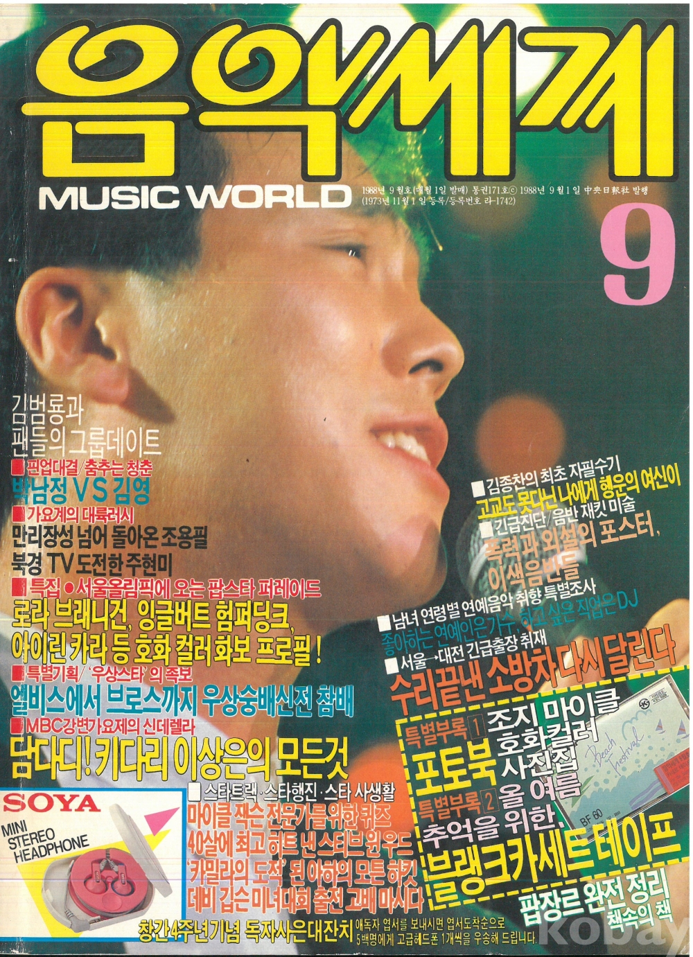 음악세계 88년9월호 이상은 이지연 건스&로지스 등 만화 포토뮤직 카세트 lp 잡지 부록 상태 최상급