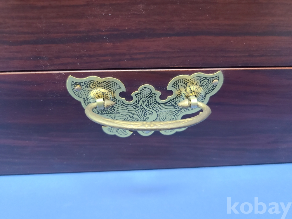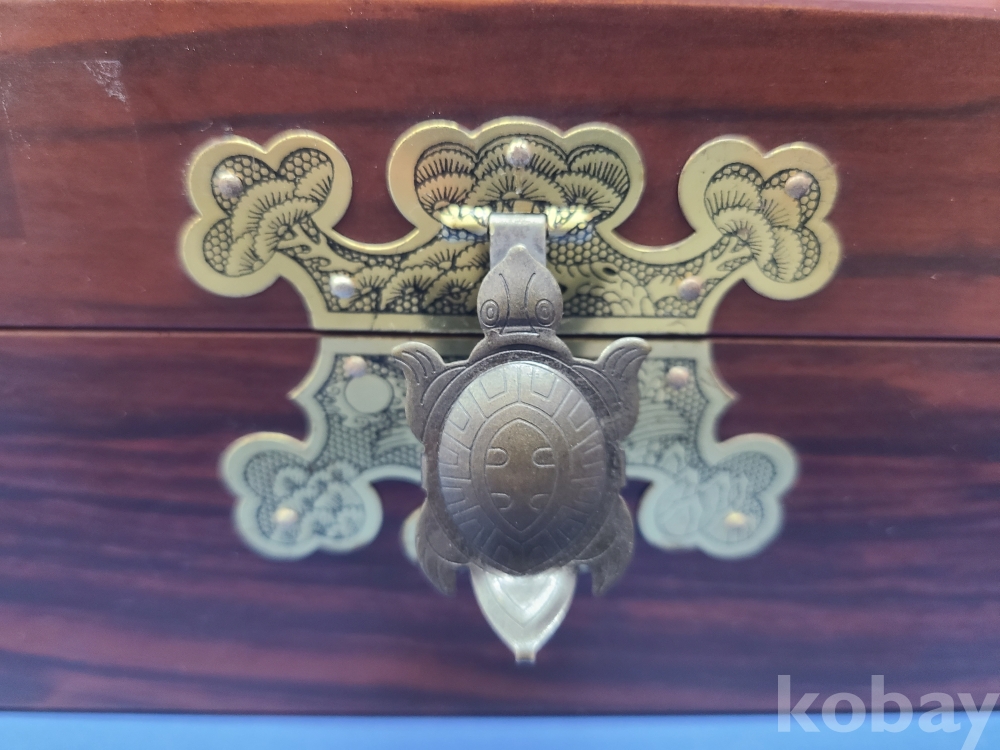 적혀있다/3면에 봉황,거북 문양 표찰이 부착됨/가로*세로*높이=32*22*11cm