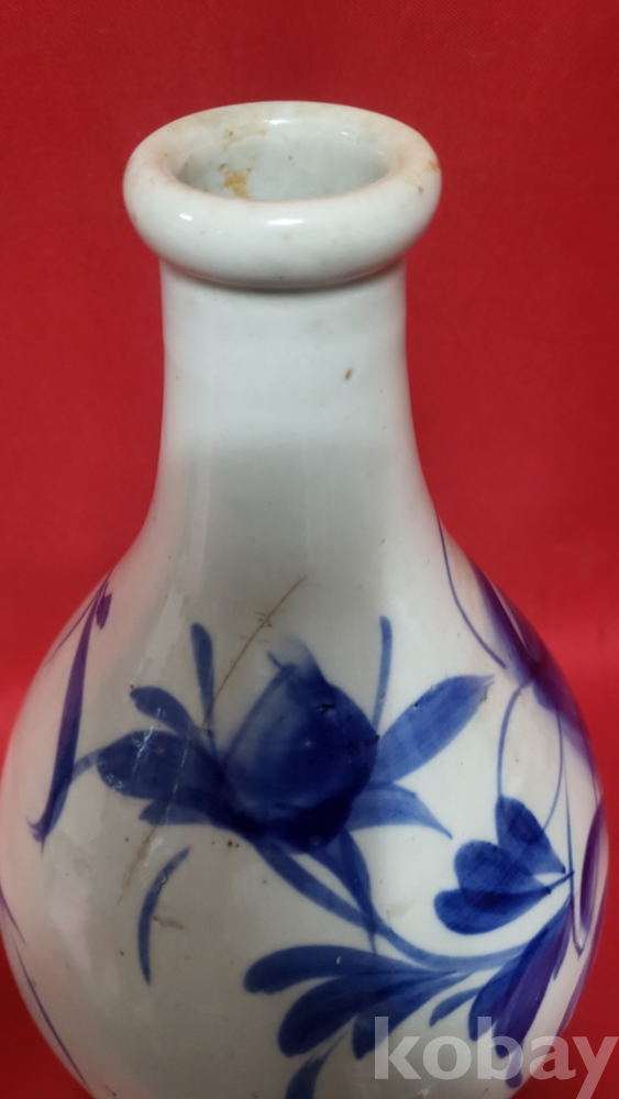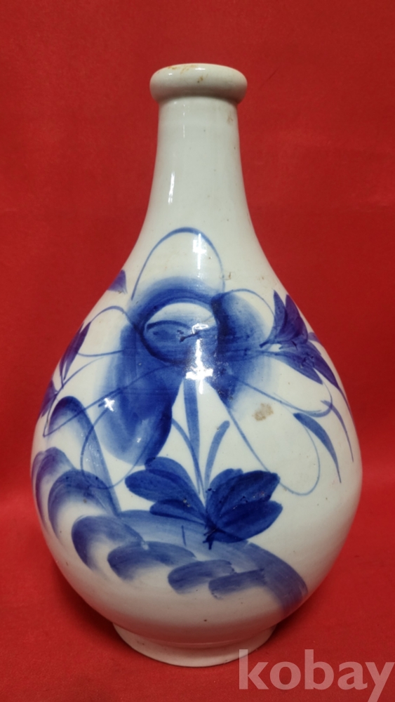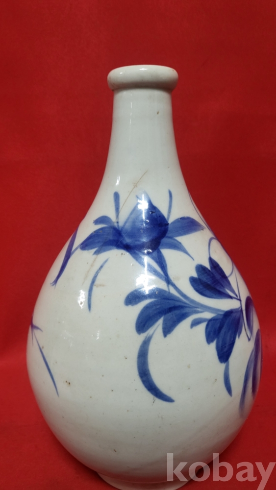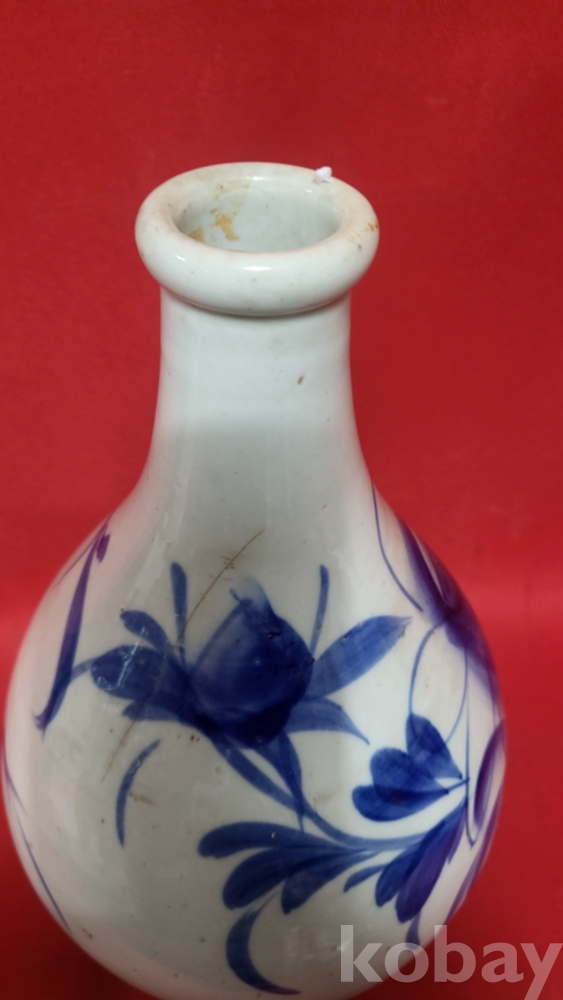 강점기 연대 갖춘 청화백자 목단문양 가락지 주병입니다,