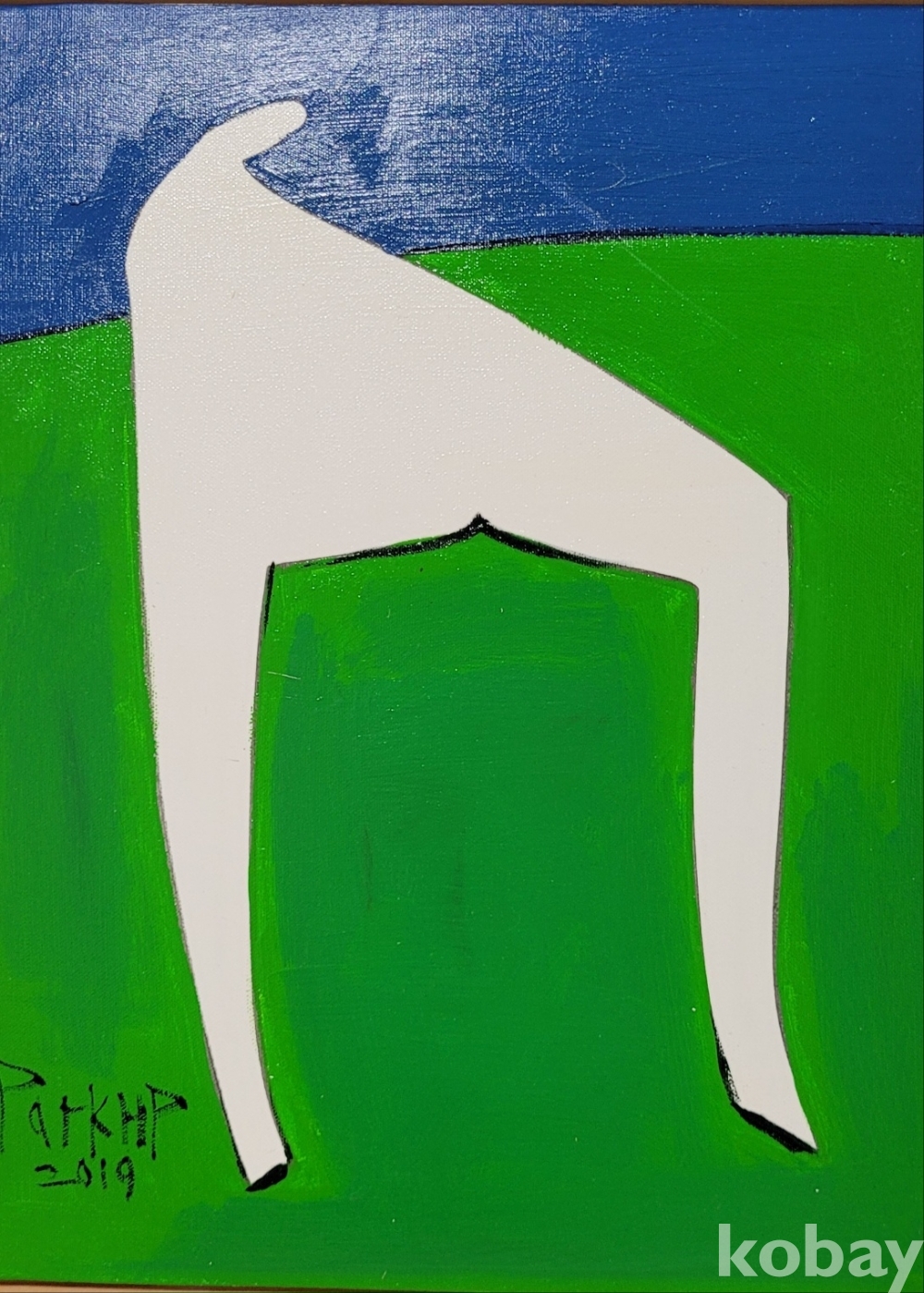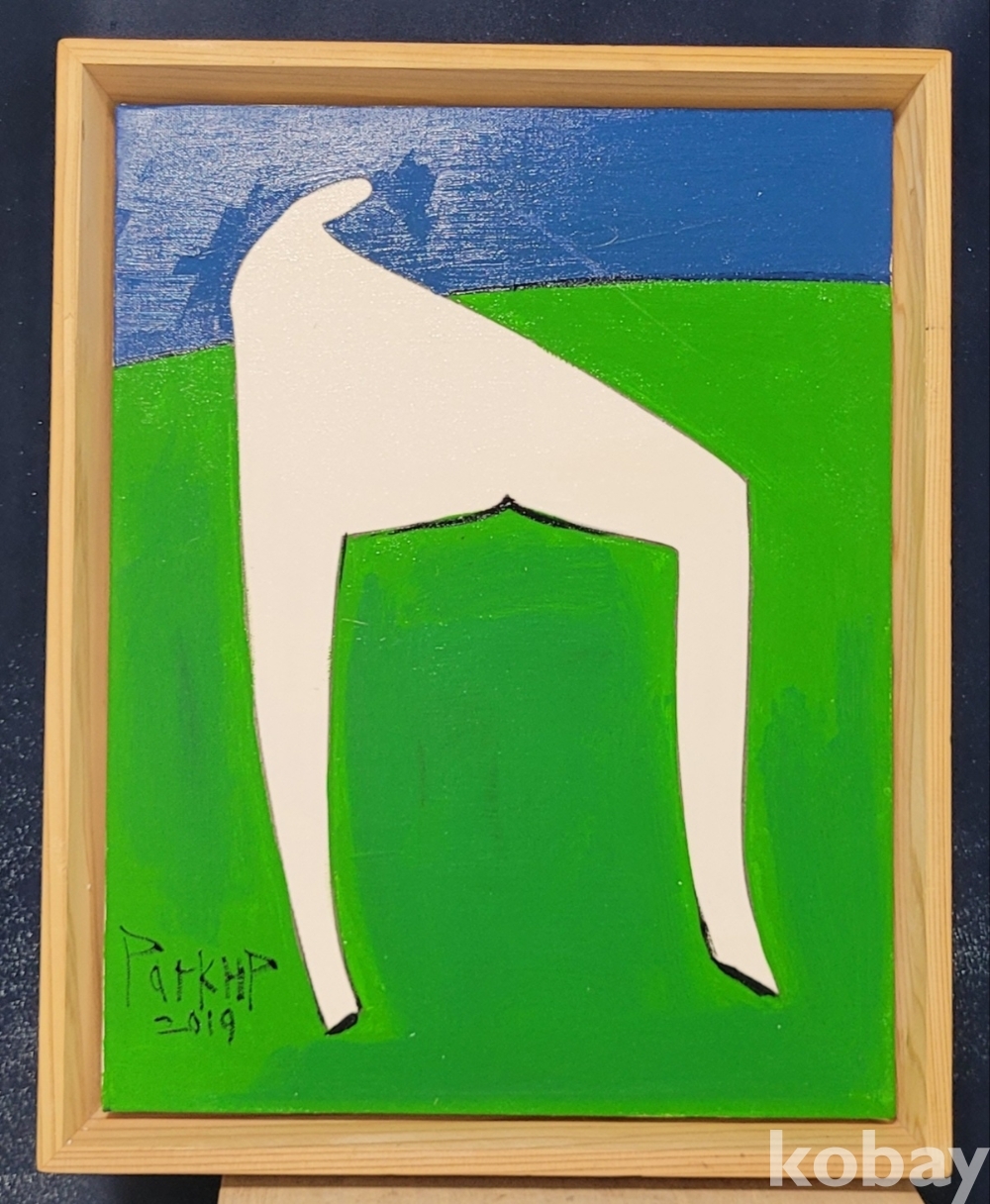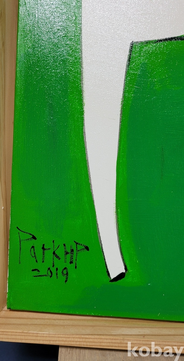 본 작품은 박형필 작가가 2019년에 제작한 6호 작품으로, 선명한 색채와 단순화된 형태가 돋보이는 회화입니다. 넓게 펼쳐진 녹색과 청색의 색면 위로 흰색의 상징적 형태가 자리하며 경쾌한 리듬감을 형성합니다. 박형필 작가 특유의 일상적 형태를 단순화한 조형 언어가 잘 드러나 있으며, 밝고 직관적인 색감 대비가 현대적 감각을 더합니다. 작품은 미사용 신품급에 가까운 상태로 보존 상태가 매우 우수합니다. 좌측 하단에는 Park HP 2019 서명이 확인되며, 작품 크기는 32×41cm입니다. 원목 프레임 포함으로 전시·소장이 모두 용이합니다.