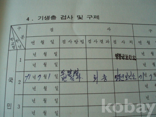 건강기록부(남) - 회충, 영동군보건소 (1971년)