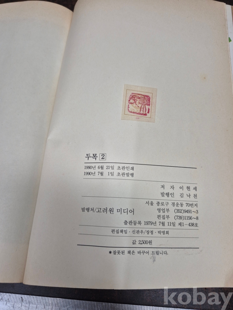 1990년 이현세 글 그림 두목 1권 2권 15*22.5*1.5
