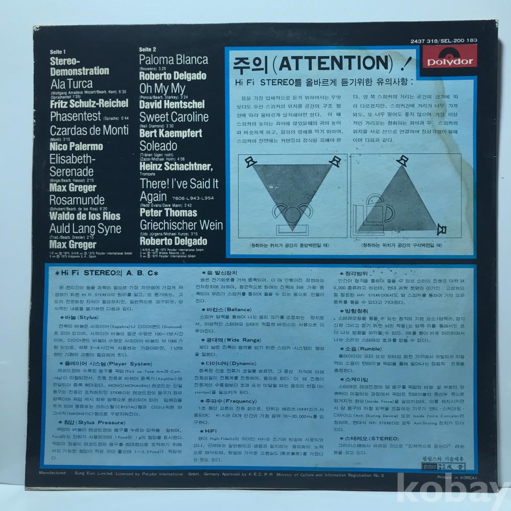 | 자켓상태 | EX : 약간의 마모, 모서리 찢김 존재 | 음반상태 | EX : 재생에 영향 없는 가벼운 기스 존재 | 발매정보 | 알수없음 | 가사지여부 | 무 |