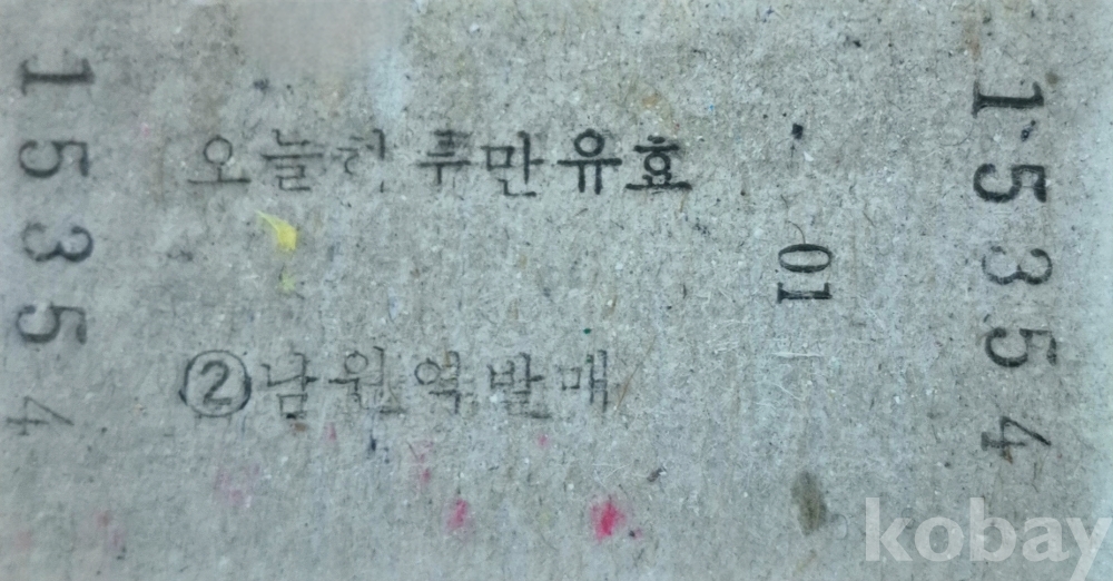 신형 비둘기호 승차권(한국철도 문양) 전라선 남원-여수 노소입니다.