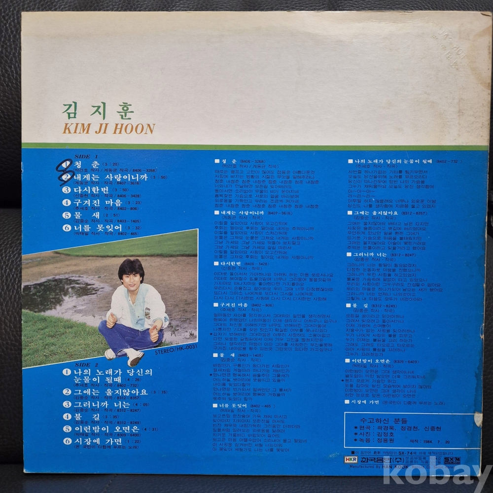 김지훈 (청춘 / 그애는 울지 않아요) 조항조 솔로데뷰반, 1984 한국음반, 방송국용 음반