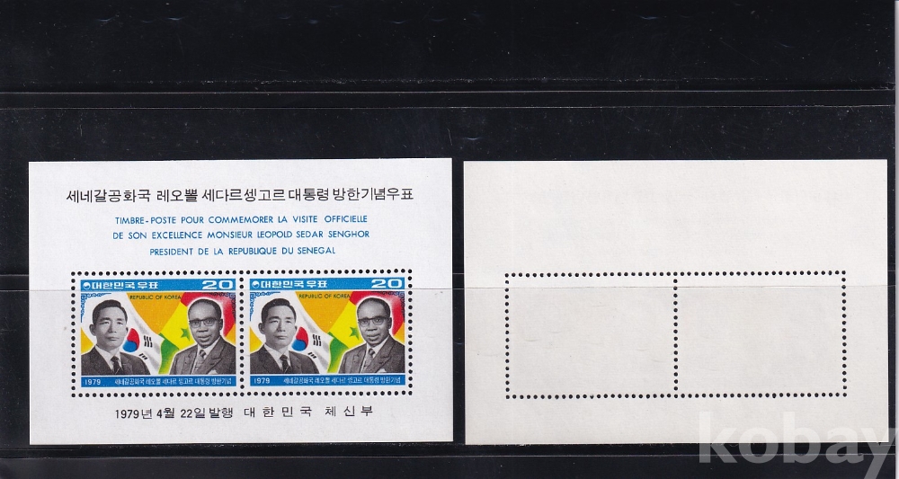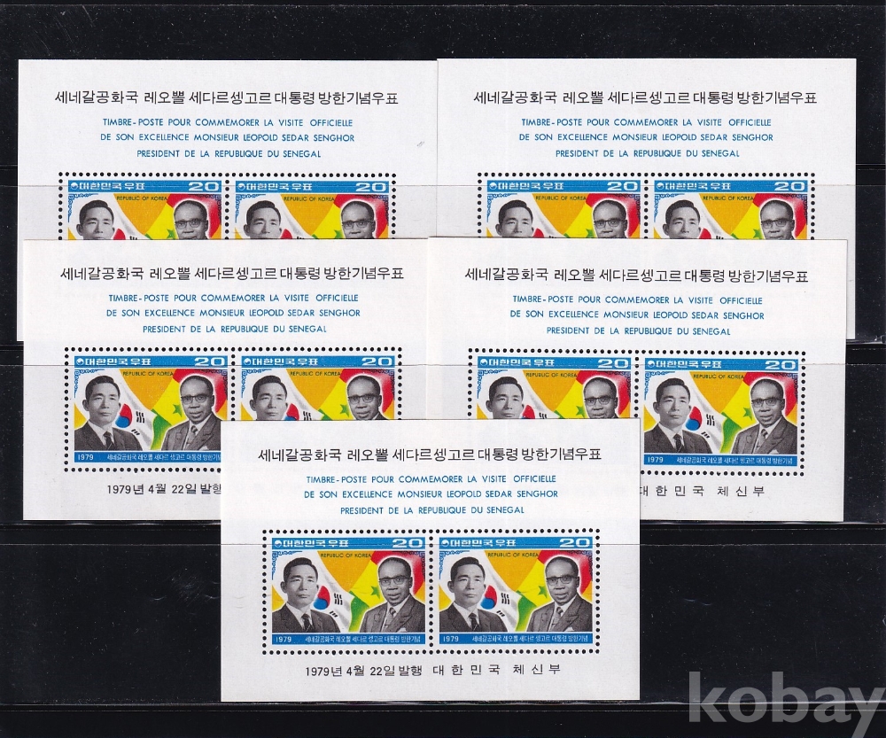 - 미사용 1979년 박정희 대통령 세네갈공화국 레오뽈 세다르셍고르 대통령 기념 시트 5장 일괄