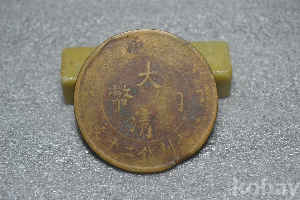 " 귀한종류 " ~ 오래되고 사용감이 많은 낡은 보품~ 보품이하급의 대형지름 33 mm 진품 중국동폐 청나라 대청동폐 20문 ".. 진품 중국동폐 청나라 대청동폐 ..