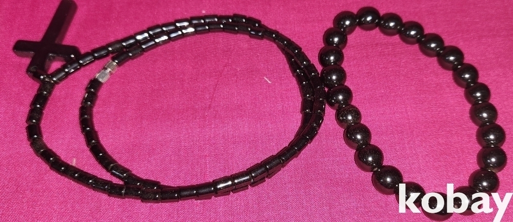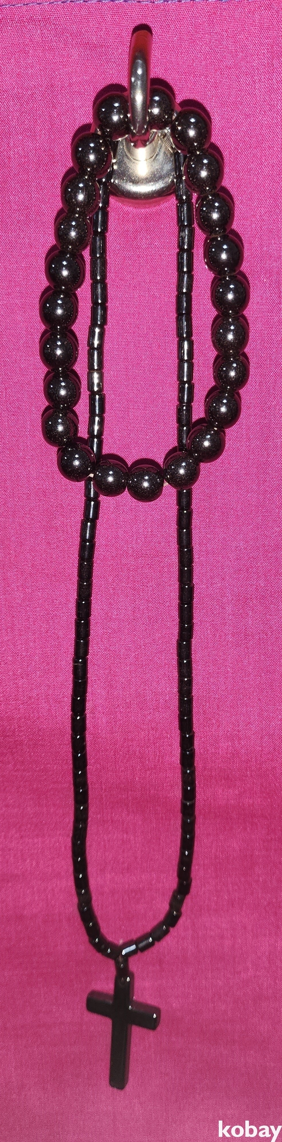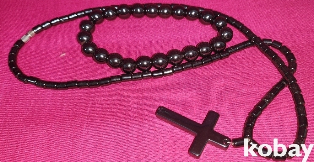 십자가 형상 펜던트 자석물질로 완성된 목걸이와 팔지입니다,