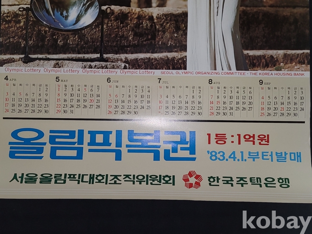 빈티지 희귀한 1983년 올림픽복권 발행을 광고하기 위해 만들어진 달력 포스터입니다.