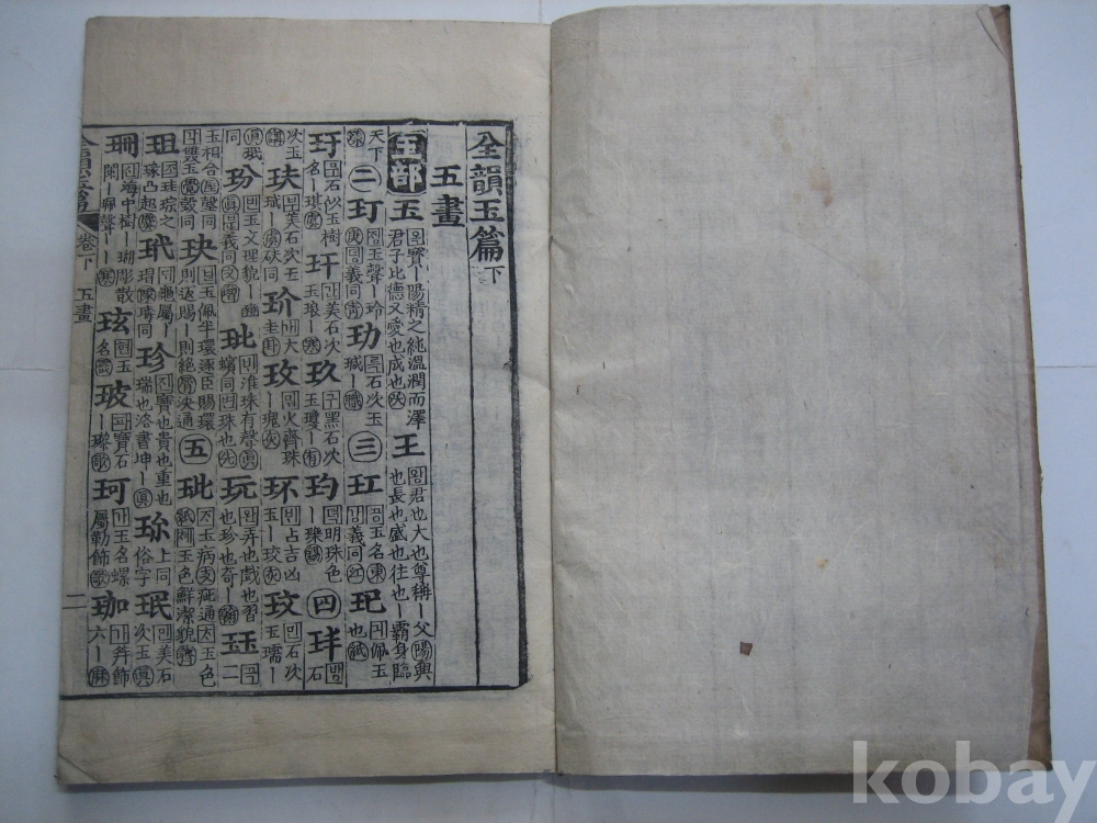 8. 내용 : 조선 말기 전라도 전주(全州)에서 간행한 옥편입니다. 완서(完西)는 전주 서쪽 용머리재를 뜻하며 일제 시대에는 다가서포(多佳書鋪), 서계서포라는 책방이 있었던 곳이기도 합니다.