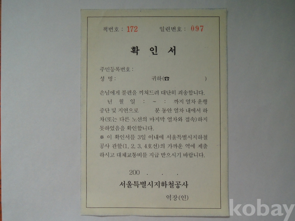 서울지하철 승차권 확인서 (2)