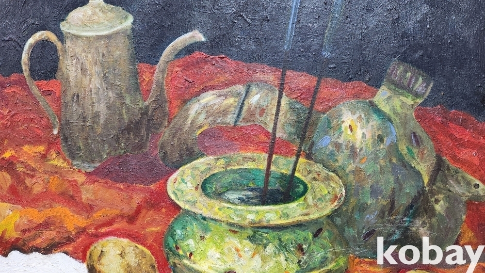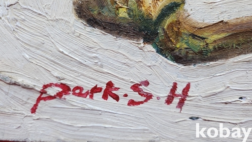 서양화가 사인이 보이는 켄버스 유화 정물 20호 작품입니다,