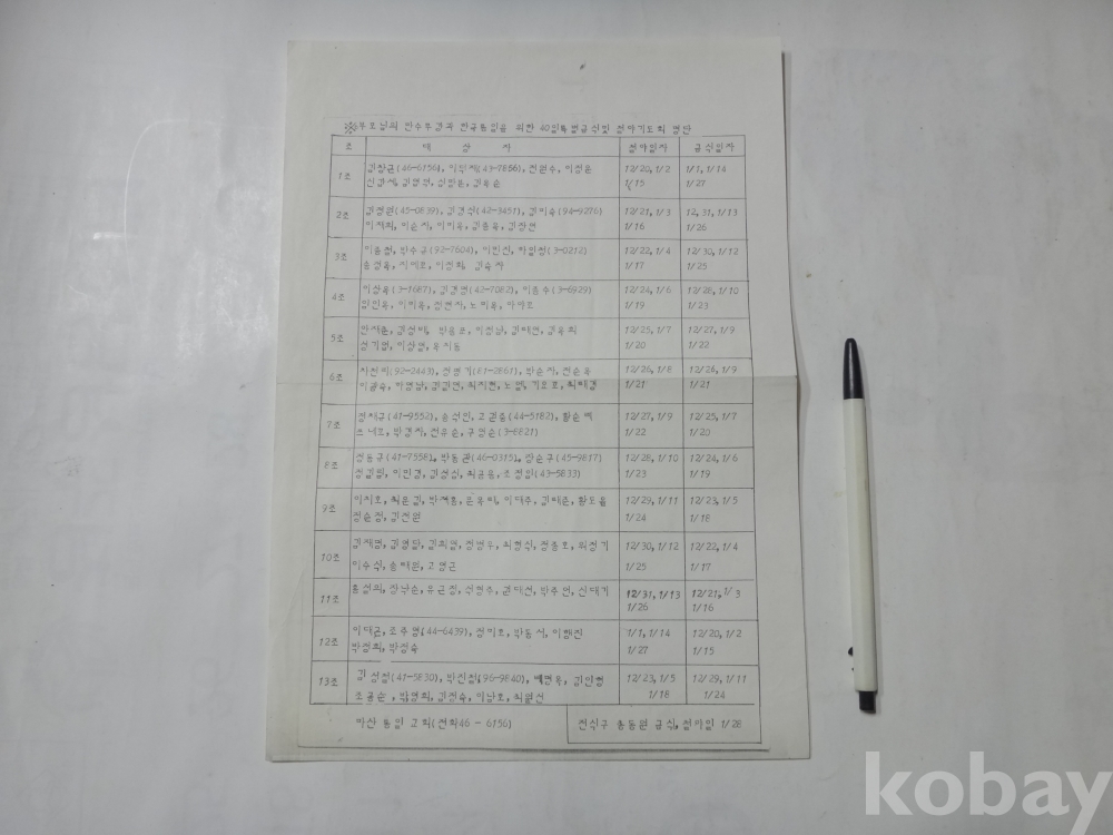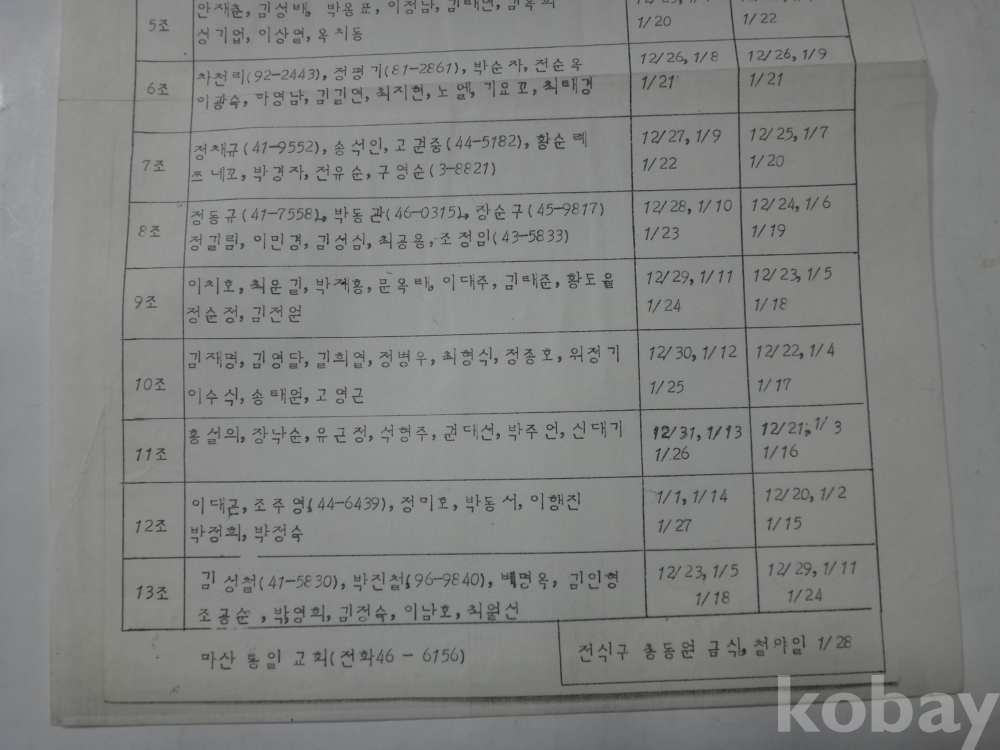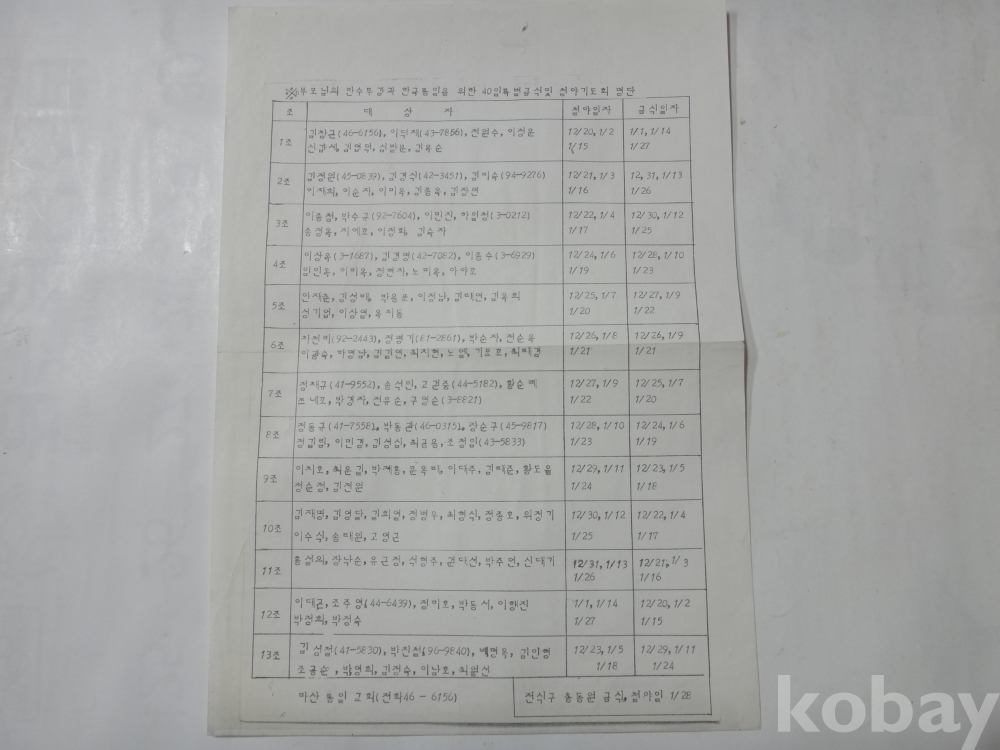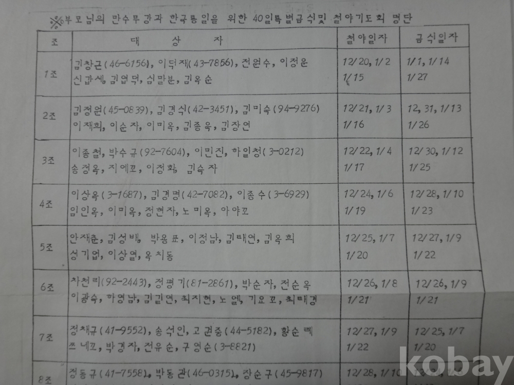 부모님의 만수무강과 한국통일을 위한 - 40일 특별금식 및 철야기도회 명단