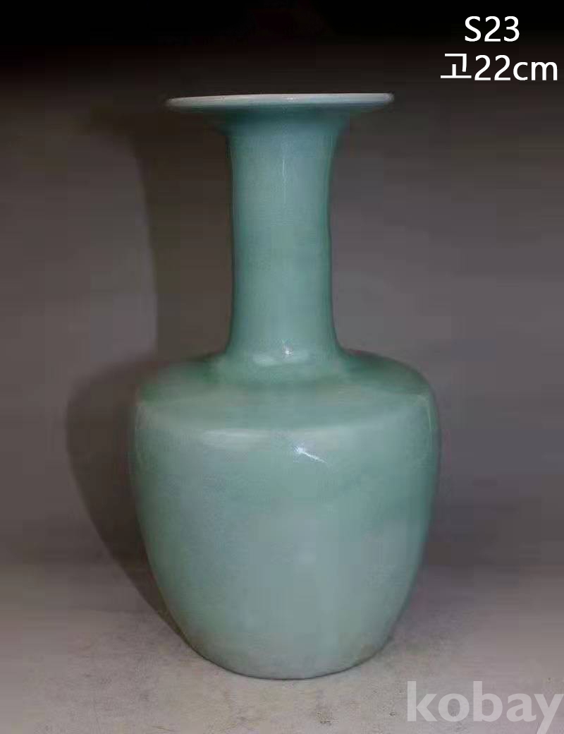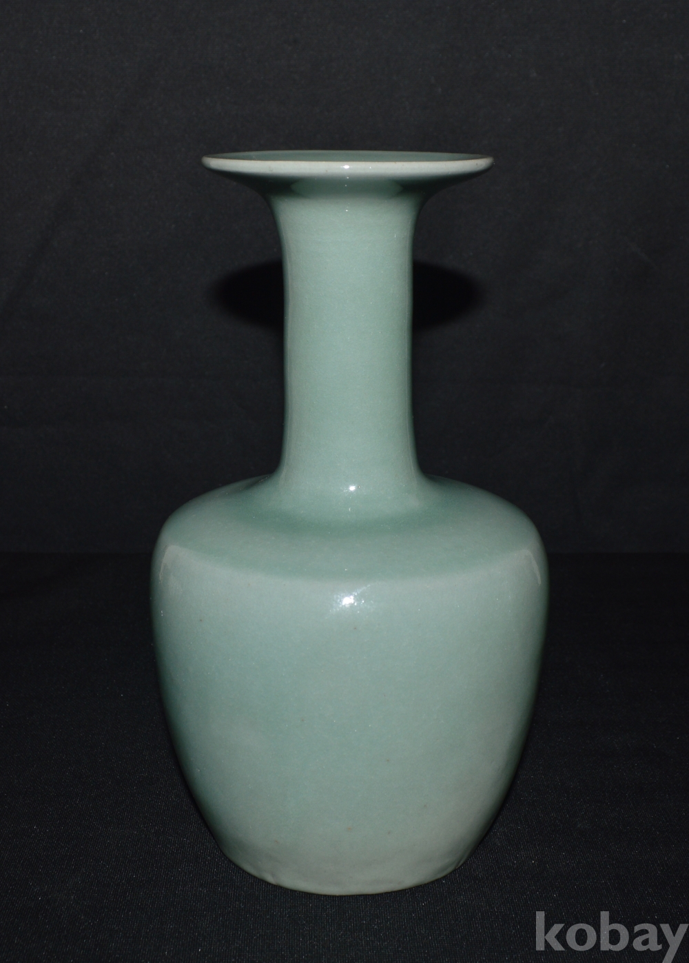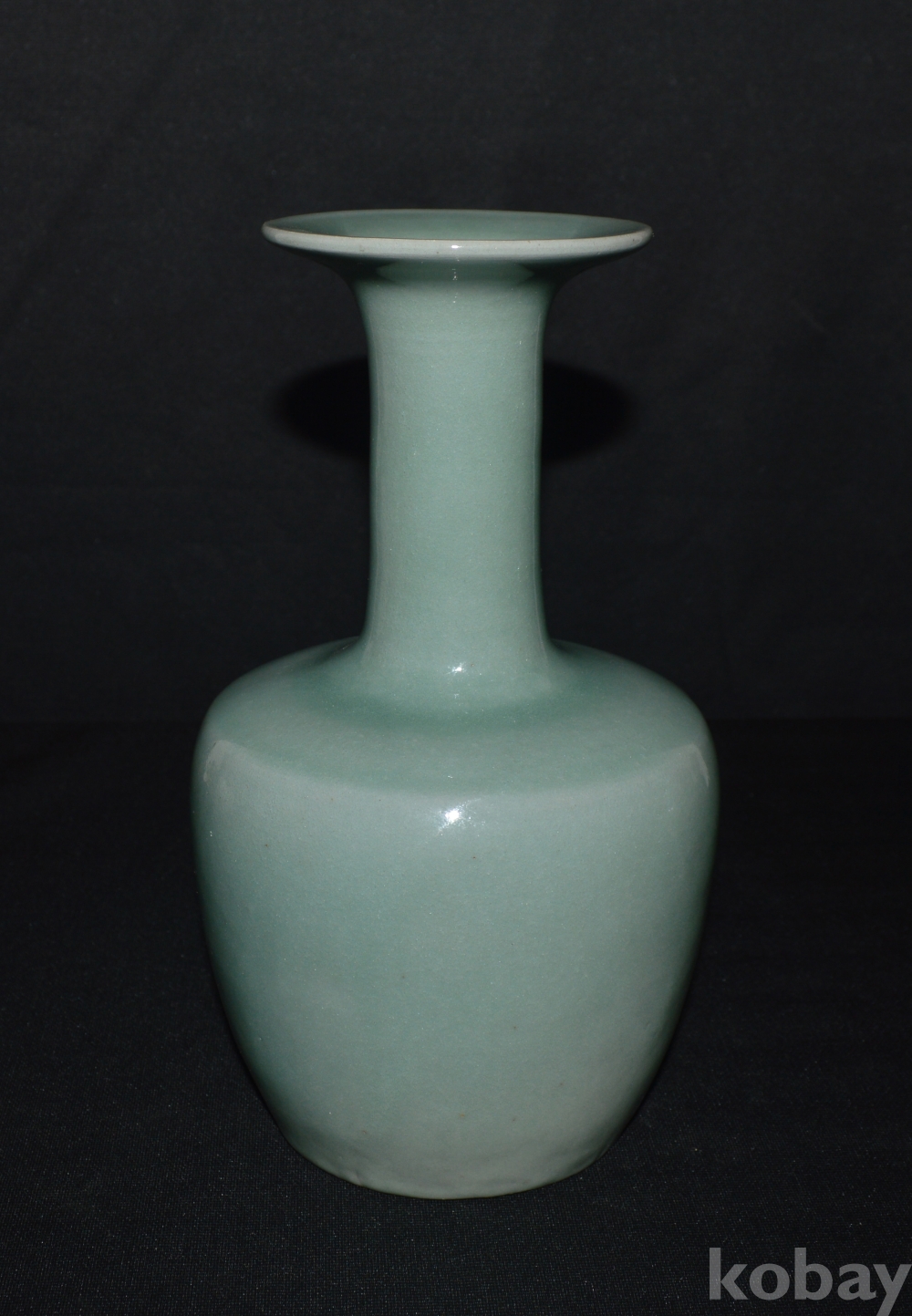 긴 목에 넓은 구연부를 가진 고려청자 인데, 방망이 형태라 하여 봉추병이라 하며 특이하게도 바닥이