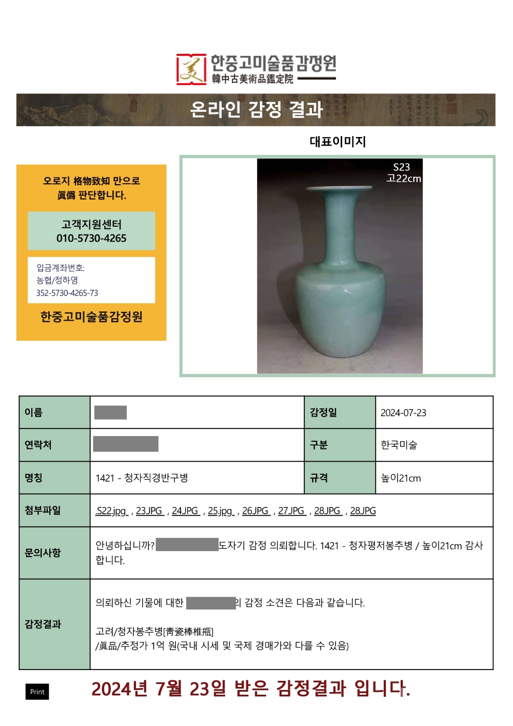 특히 기물을 받고 나서, 누구에게 보였더니 가짜라 하더라 하시며 반품하는