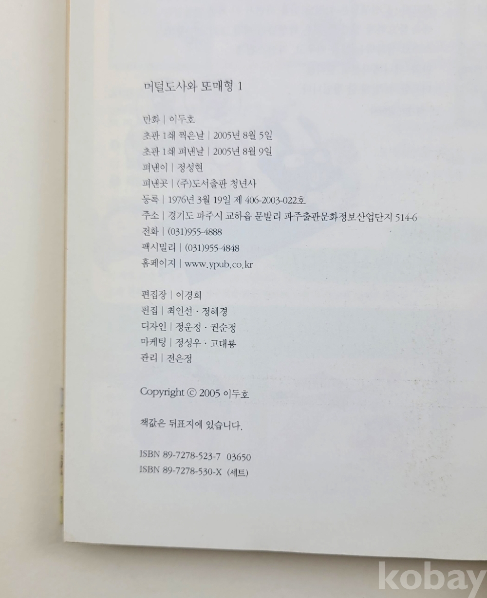 물 품 명 | 이두호 / 머털도사와 또매형 1,2완결 총2권 / 2005년 초판 / 도서출판 청년사 |