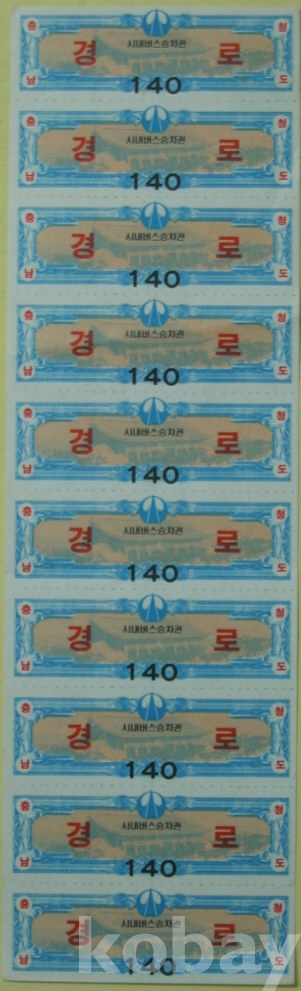 1990년대 충청남도 경로 시내버스 승차권 10장