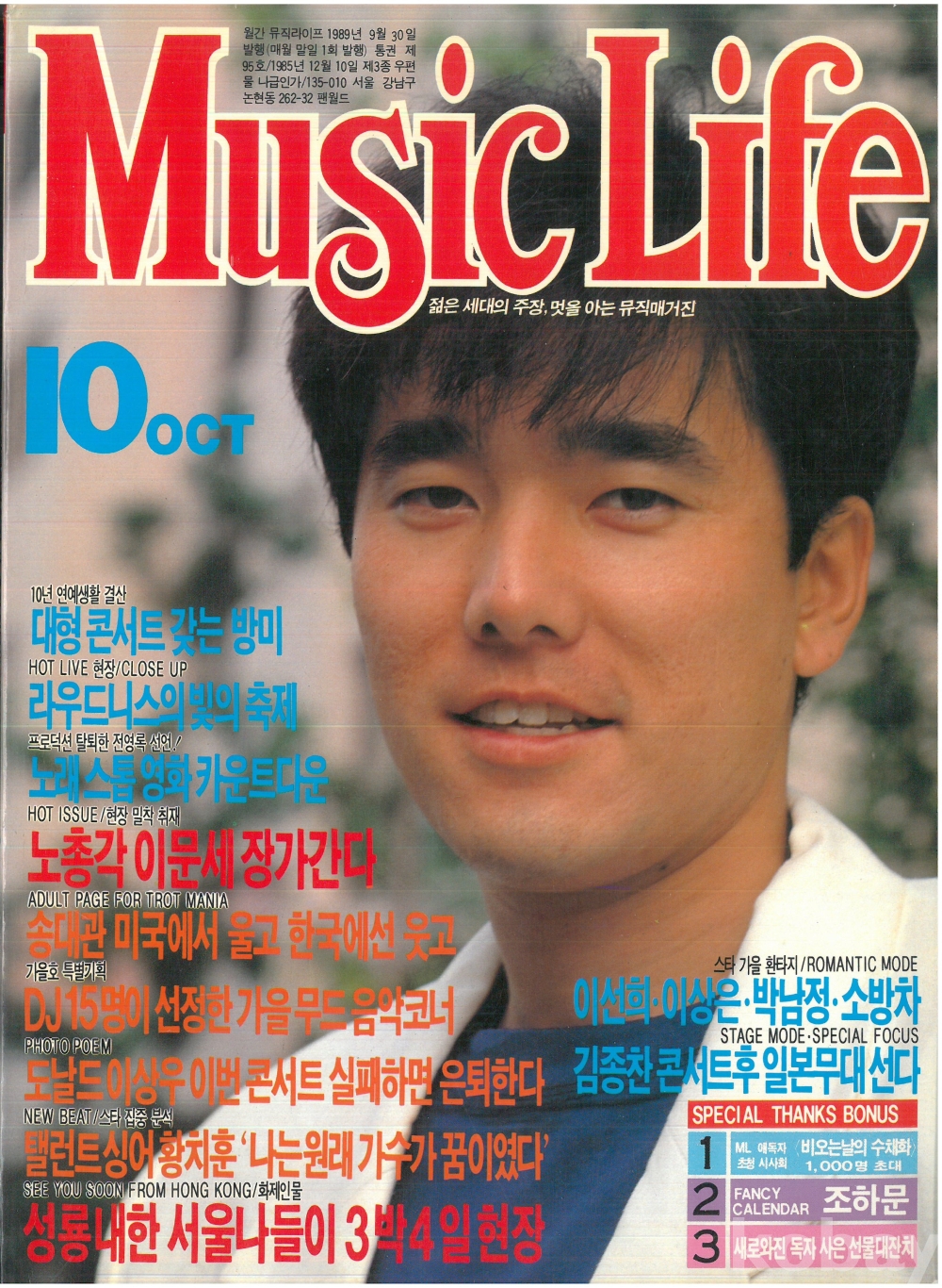 뮤직라이프 89년10월호 이문세 민혜경 장국영 등 만화 음악세계 카세트 lp 잡지 부록 상태 최상급