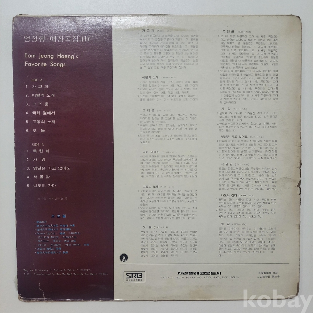테너 엄정행의 '애창곡집 1집' LP 앨범입니다.