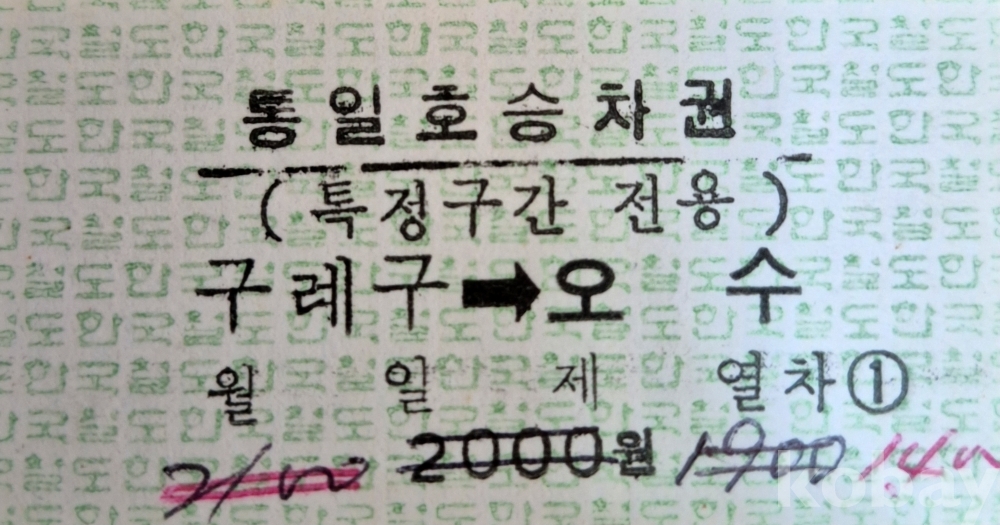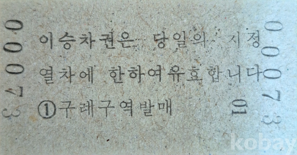통일호 승차권 특정구간 구례구-오수 일반입니다.