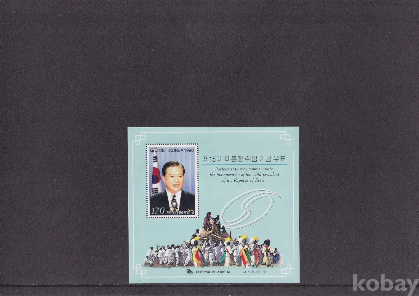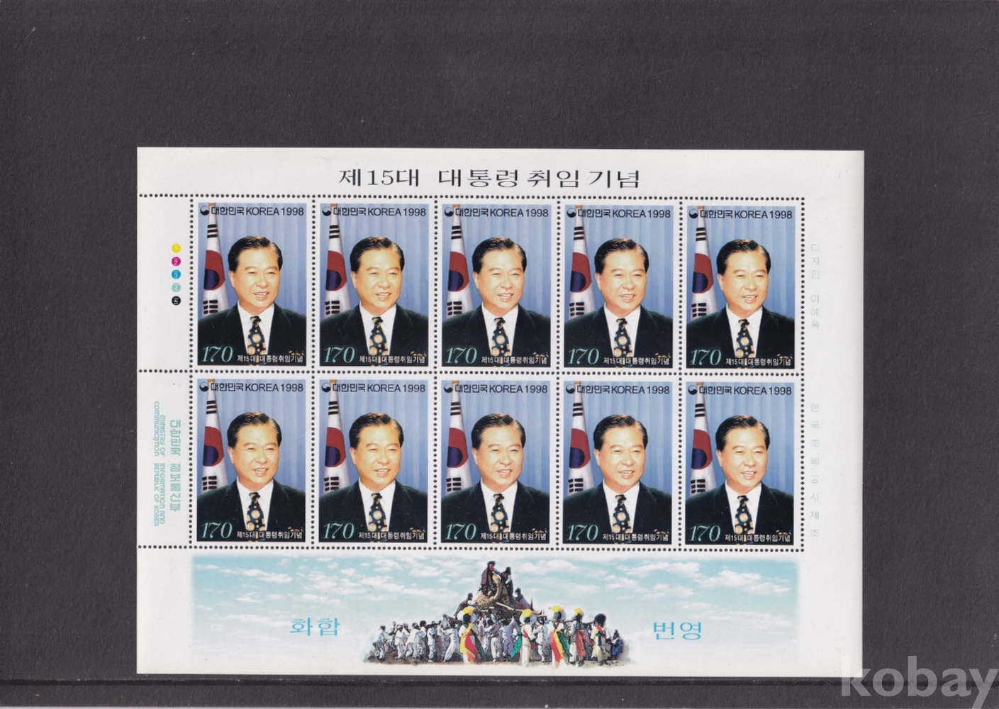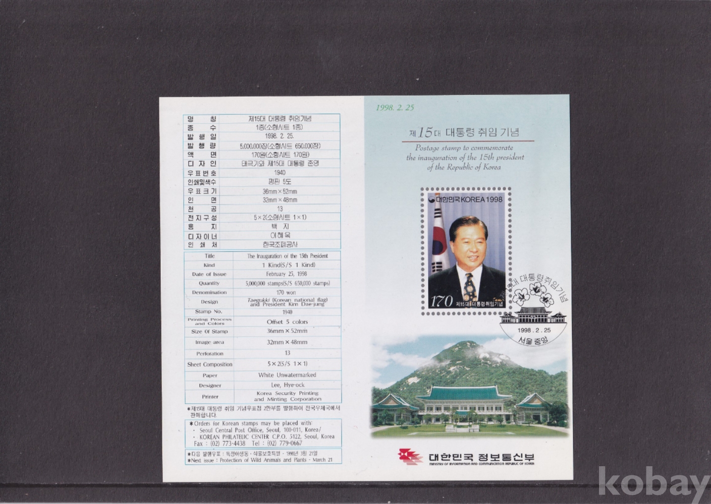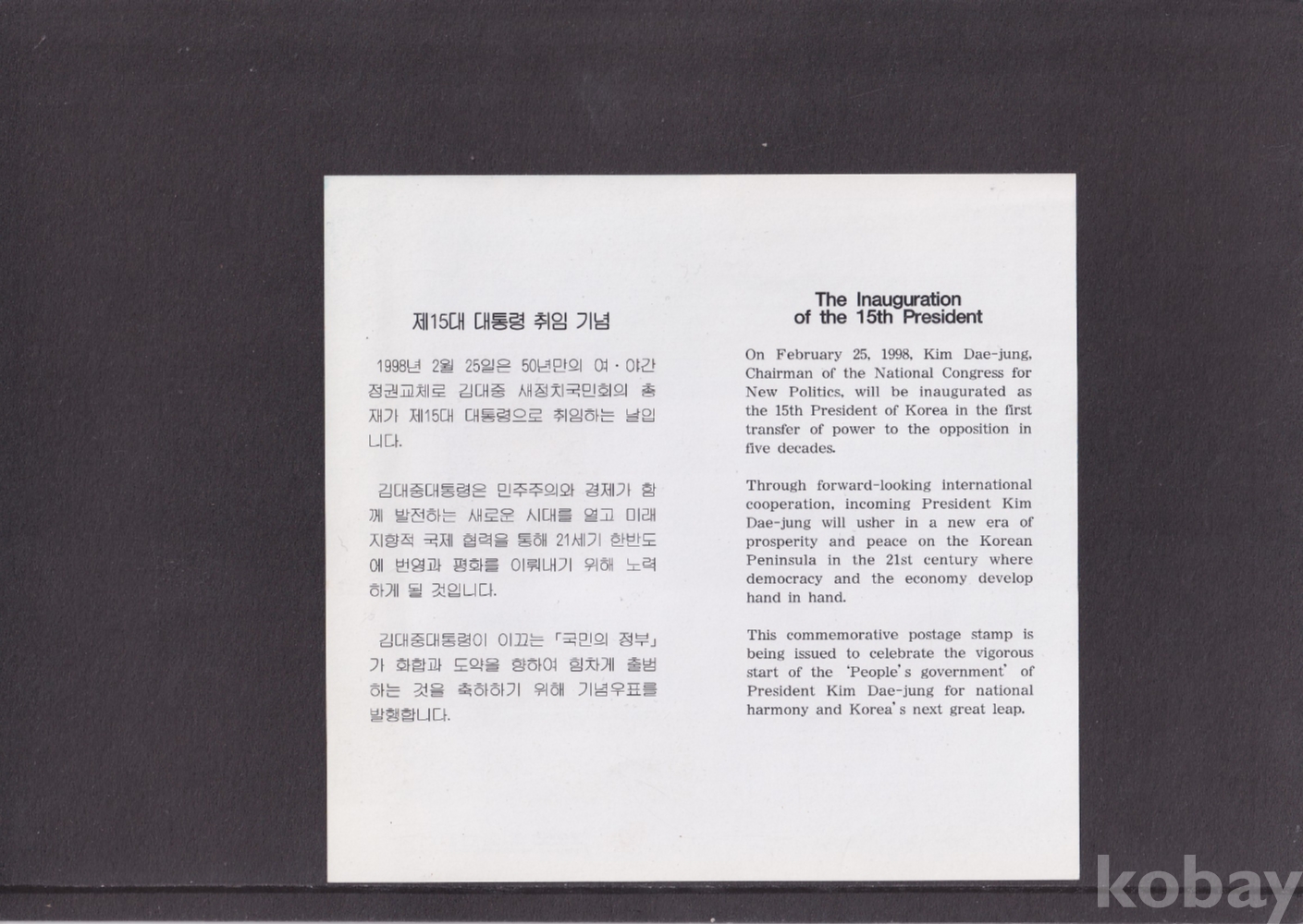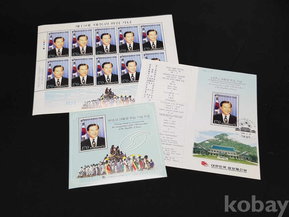 - 미사용 제 15대 김대중 대통령 취임 기념 전지, 시트, 안내카드 3종 모음