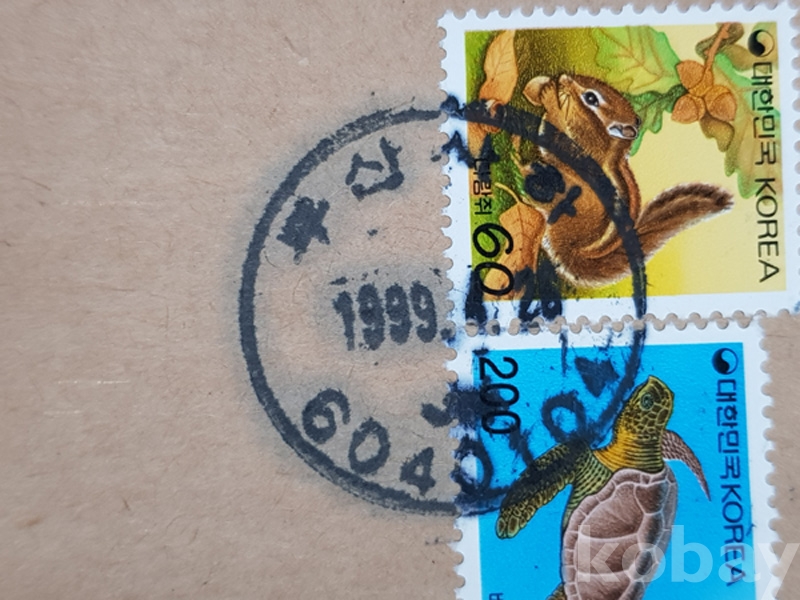 **** 99년 200원 바다거북, 60원 다람쥐 첩부 실체, 부산사하, 1999.4.26