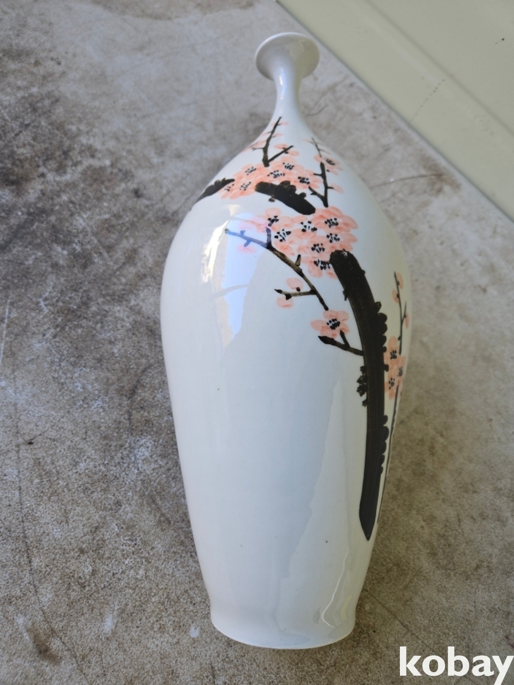 매화 꽃 표현이 있는 입이 작은 도자기 입니다.