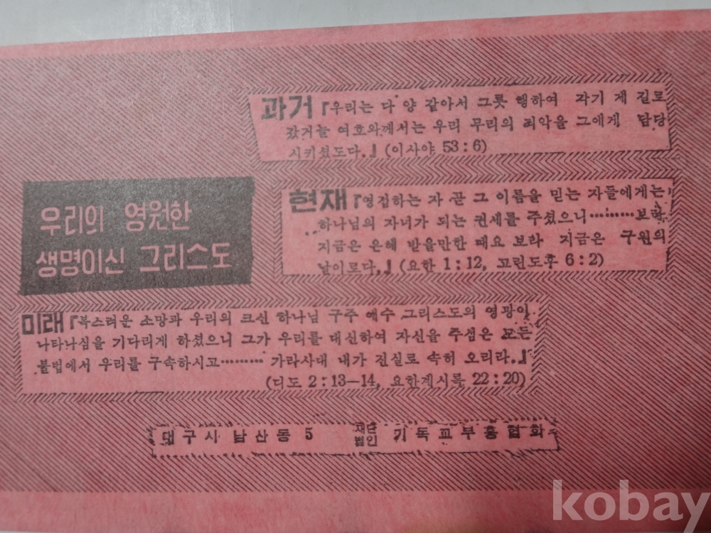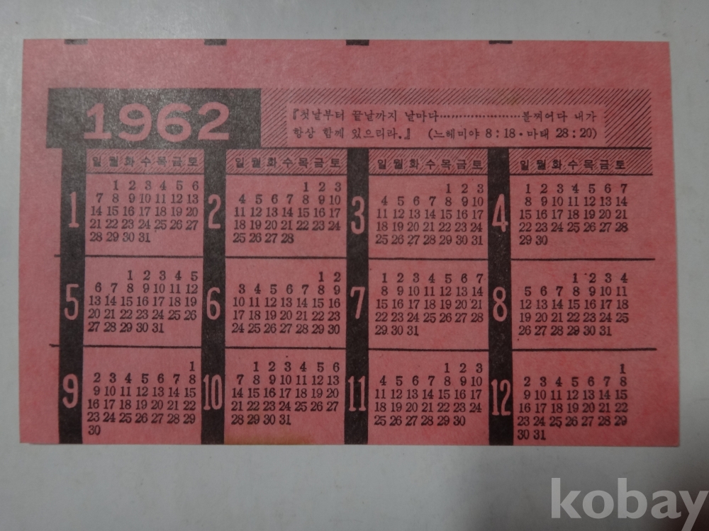 우리의 영원한 생명이신 그리스도 - 뒷면 1962년 달력 (대구시, 기독교 부흥협회)