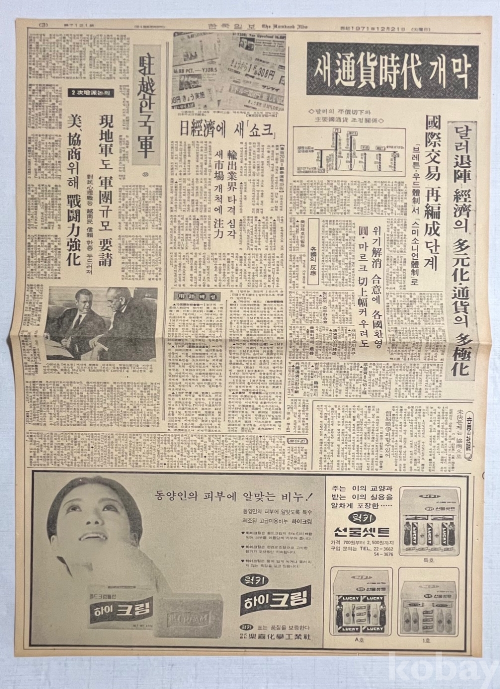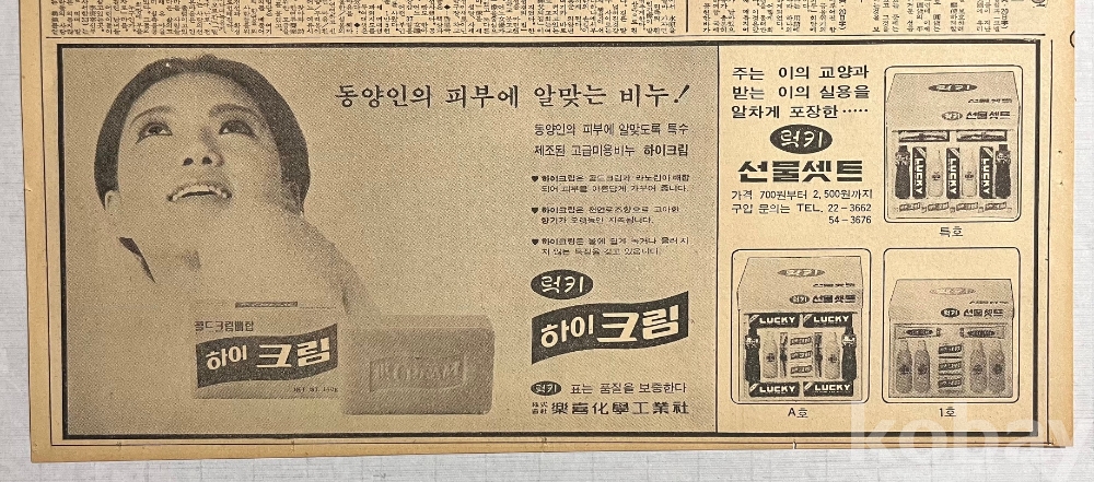 럭키 선물세트 광고가 실린 1971년 조선일보 낱장입니다.
