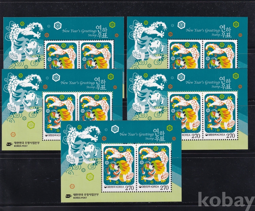 - 미사용 2012년용 연하우표 시트 5장 모음 - 2011년 발행