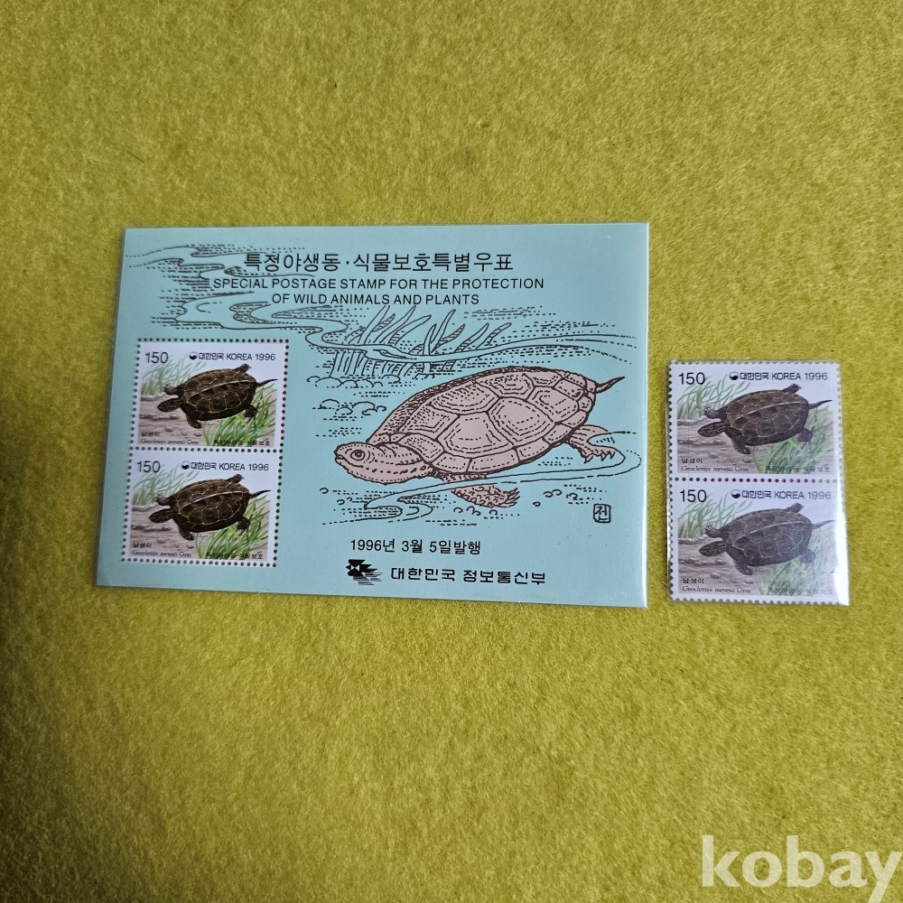 (((우표쉬트))) 1996년 특정야생동/식품보호특별우표 쉬트 /우표 2매