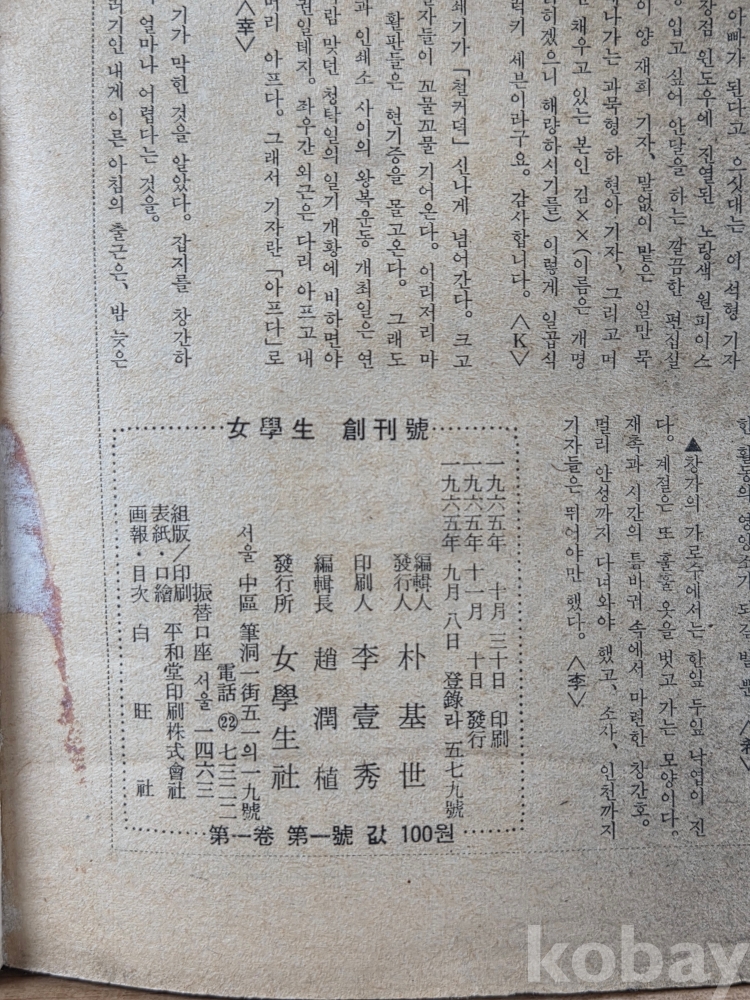 <월간 여학생> 창간호. 1965년 12월호입니다.