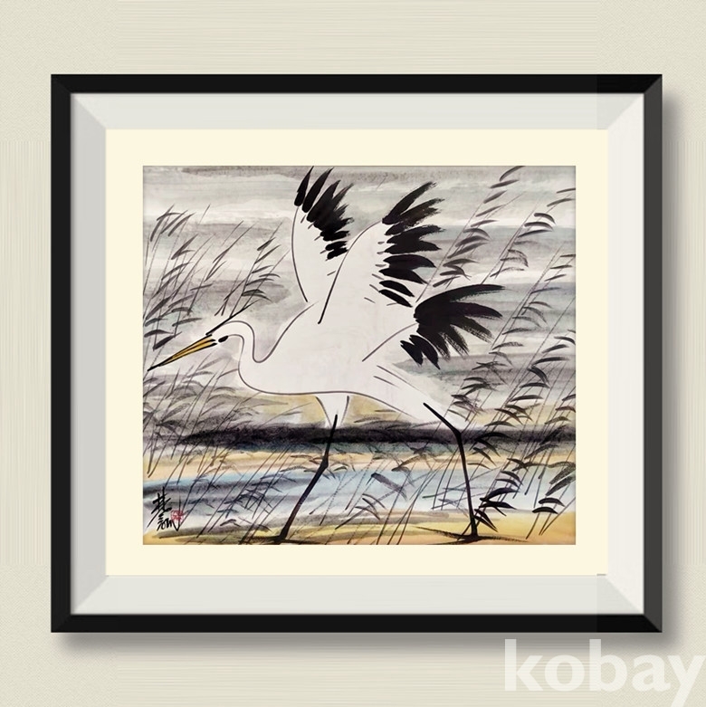 중국 근현대 서양화 정립자 임풍면(林風眠) 1980년대 사의화조도 학(鶴)