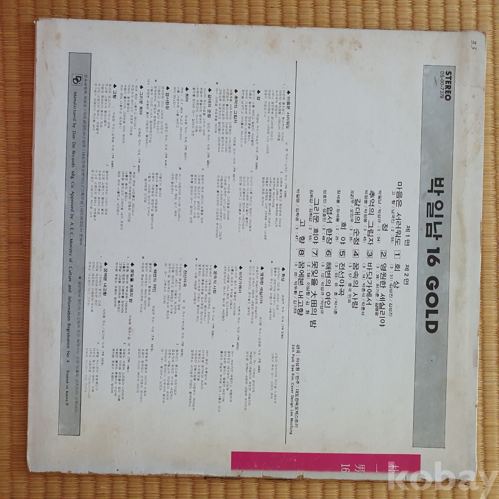 | 자켓상태 | EX : 약간의 마모, 모서리 찢김 존재 | 음반상태 | EX : 재생에 영향 없는 가벼운 기스 존재 | 발매정보 | 알수없음 | 가사지여부 | 유 |