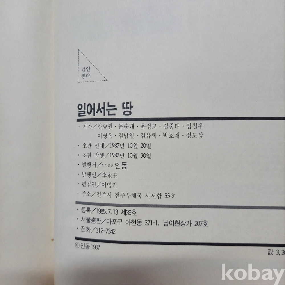 [희귀본] 80년 광주항쟁 소설집 일어서는 땅 (한승원,문순태,정도상 외/인동출판사 1987년 초판) ; 중급/서고-추03
