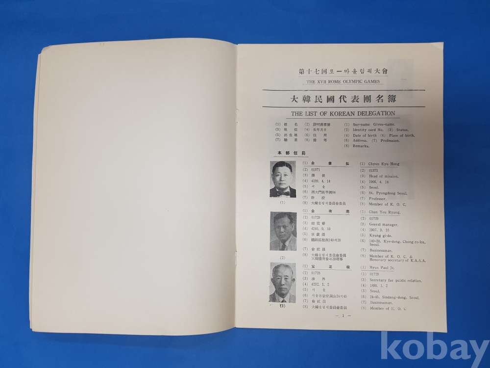 **** 제17회 올림픽 대회기념 우표 및 하계 올림픽 참가 선수단 명부