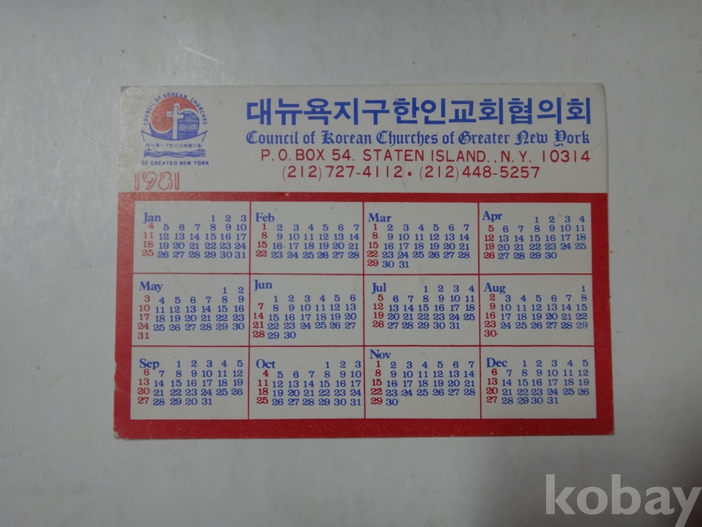 '81 대 뉴욕 전도대회 - 한인교포를 그리스도에게, 뒷면 달력 (1981년, 대뉴욕지구 한인교회 협의회)