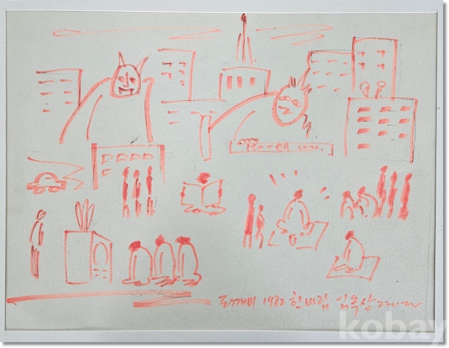 급발전하는 문명의 이기를 현대의 도깨비로 빗댄 그림같습니다.