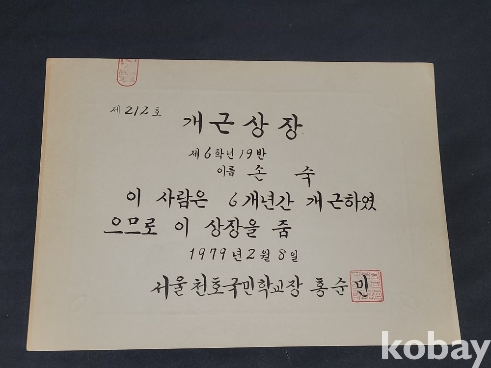 1979년 서울천호국민학교 개근상 등 5장 일괄입니다.