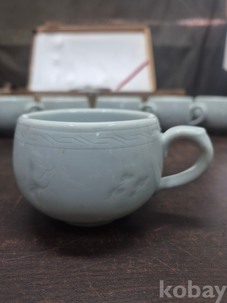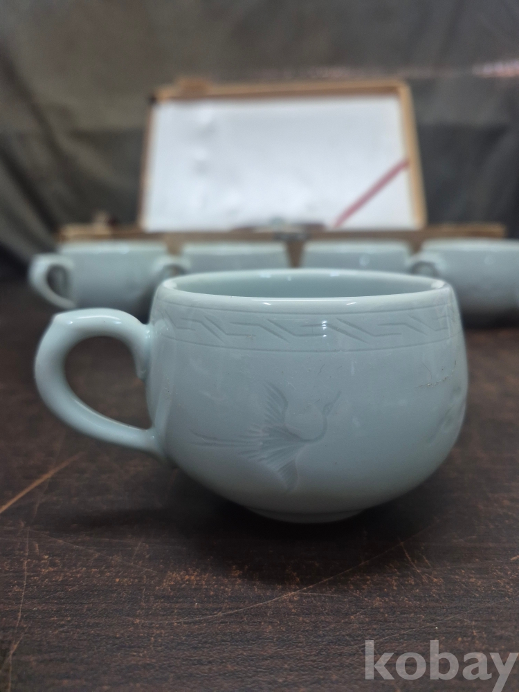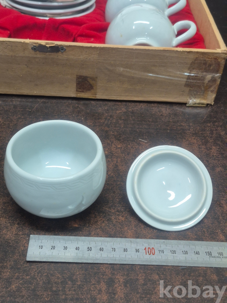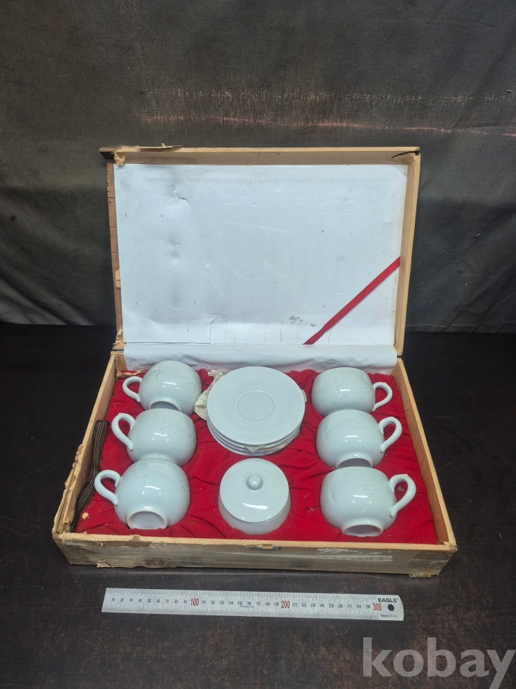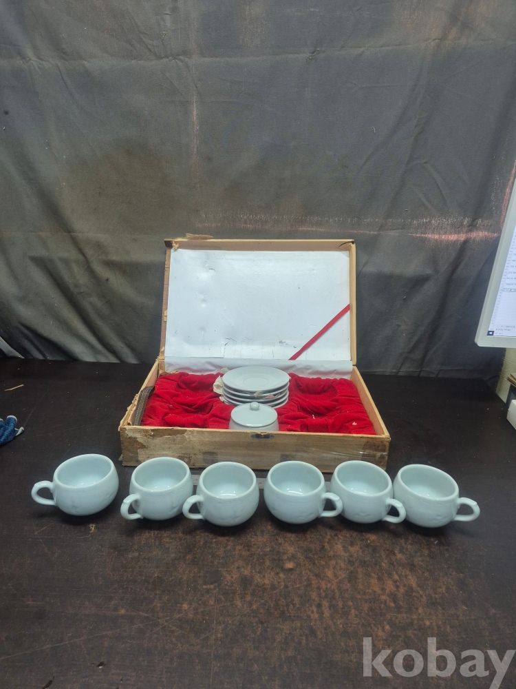 1970-80년대 은성도예 김종성 작 도자기 다기세트 케이스는 상태가 않좋아요 다기세트는 미사용품 입니다 42*27*11