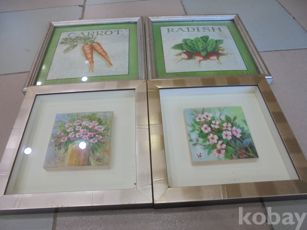 군방화는 유화로 수준높은 고급오당액자 2점에 거는고리있는 화장실등 다용도실등과 당근과 빨간무 그림도 거는고리가있어 같은데사용하면