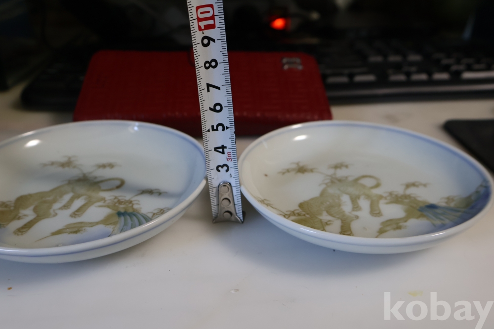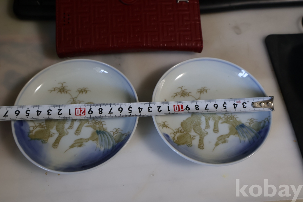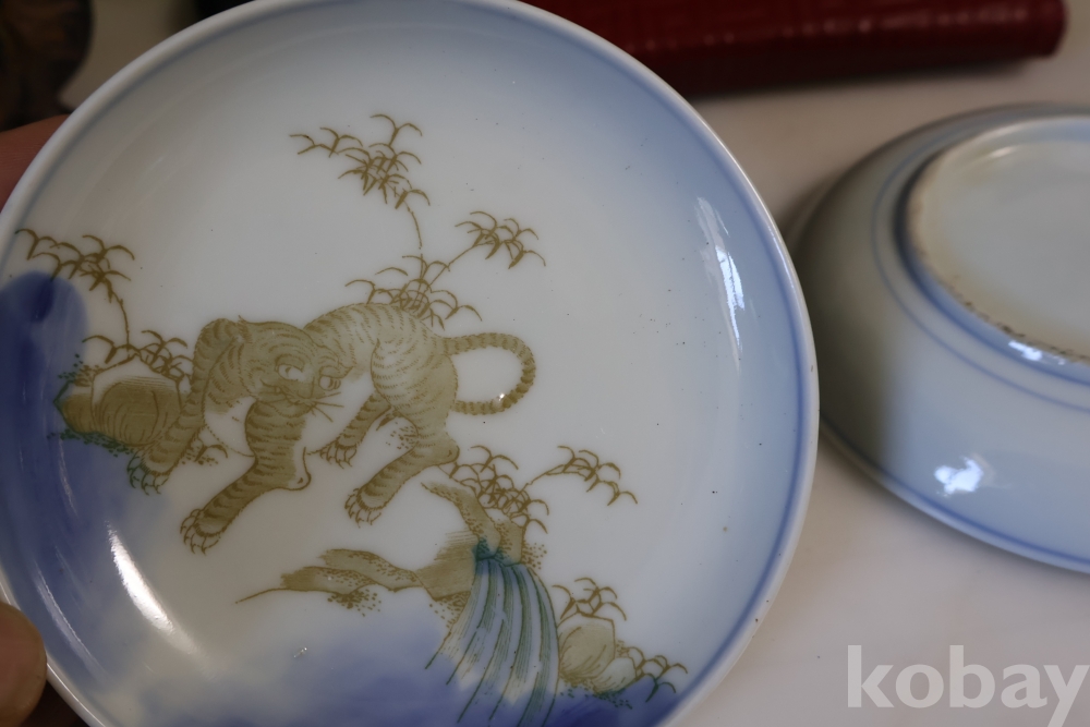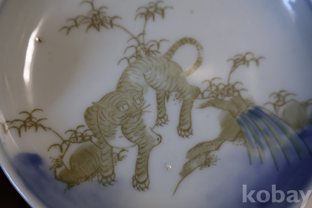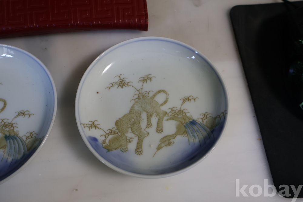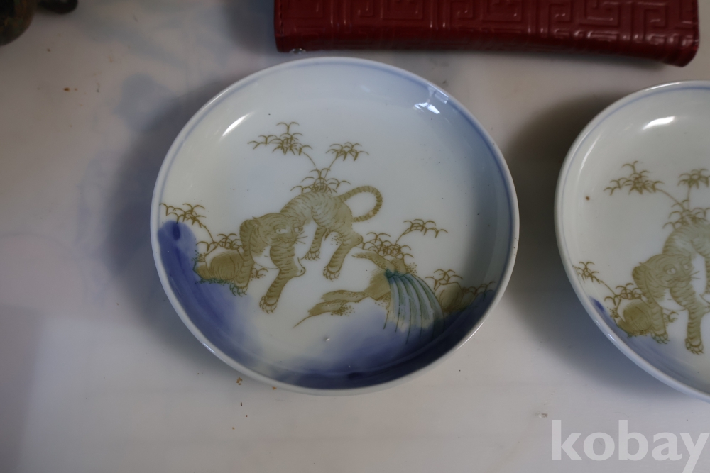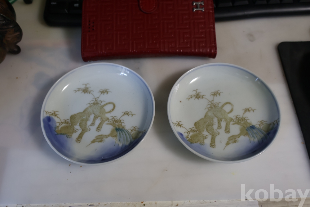 1930대 조선 호랑이 문양을 가진 귀한 왜정 당시 그림의 명물 도자기 2 세트 임니다 사진 참조 하세요