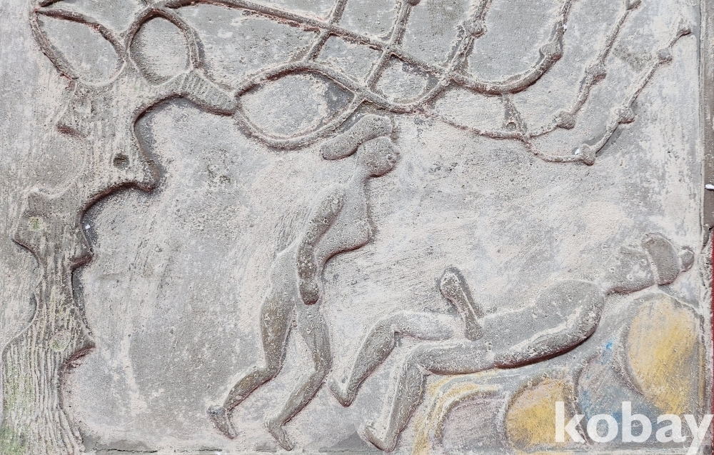 높은 연대를 갖춘 고목(古木 과 남녀가 함께하는 문양 전돌입니다,