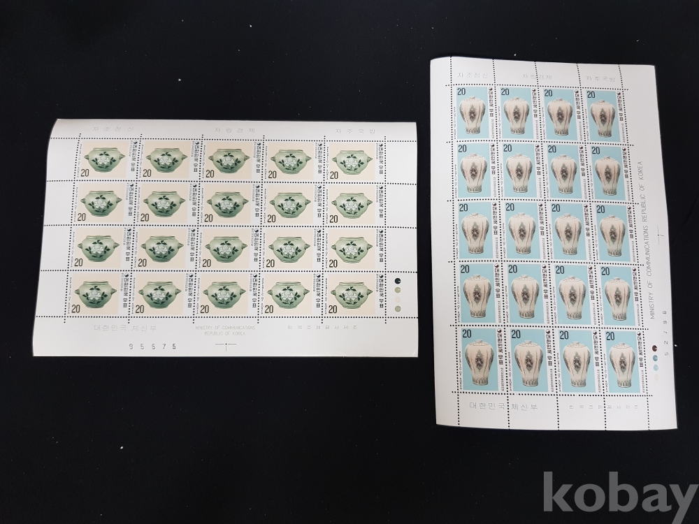 - 미사용 1977년 도자기시리즈 - 제 2집 전지 2종 모음