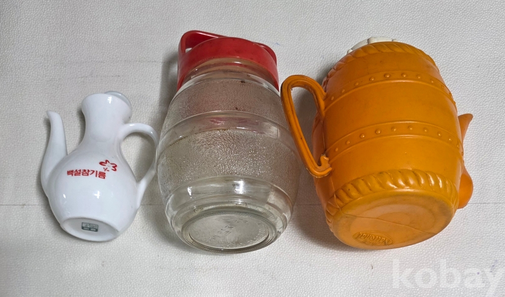 간장병 플라스틱,설탕통 유리,참기름병 도자기